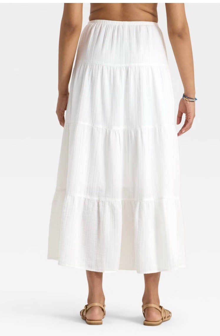 как выглядит NWT Sz M White Womens Crinkle Gauze Pull-On Maxi Skirt - Universal Thread фото