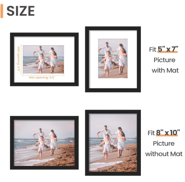 upsimples 8x10 Picture Frame Display Pictures 5x7 with Mat or 8x10 Without Mat