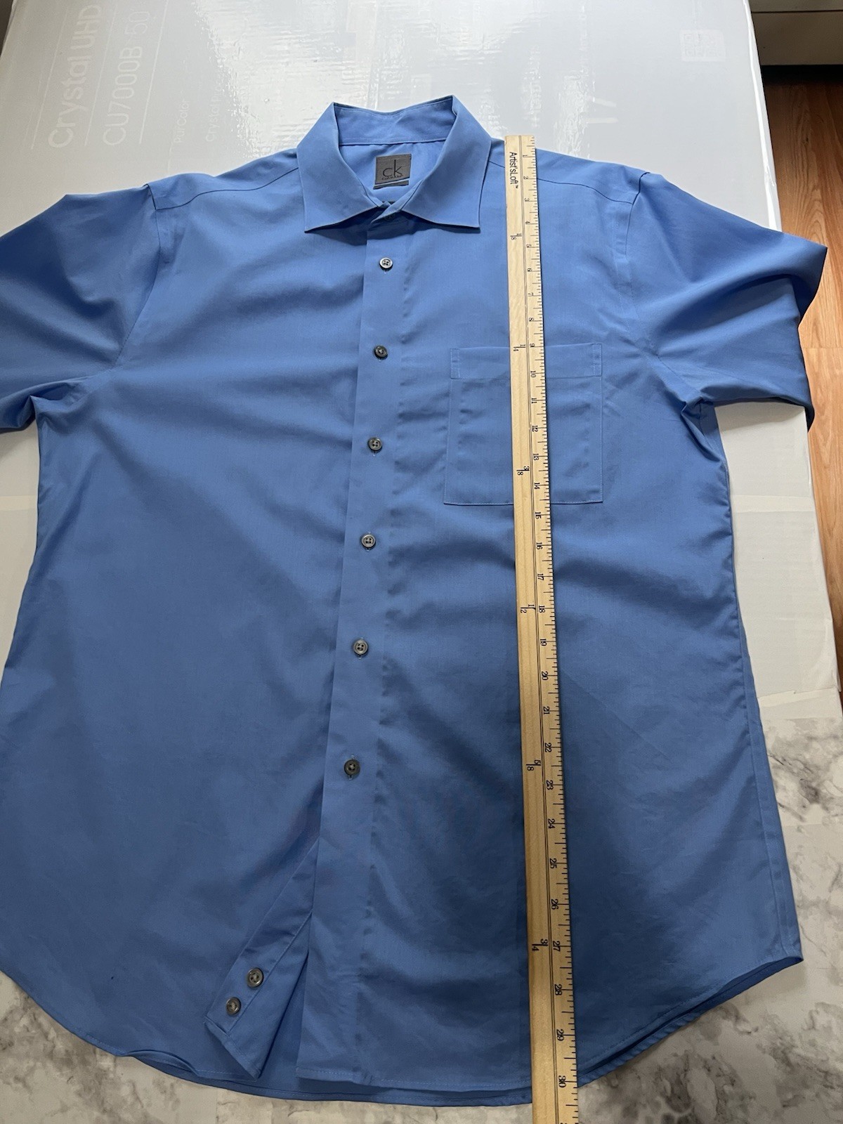 как выглядит Calvin Klein Slim Fit Blue Stretch Dress Shirt Men s 16.5 32/33 фото