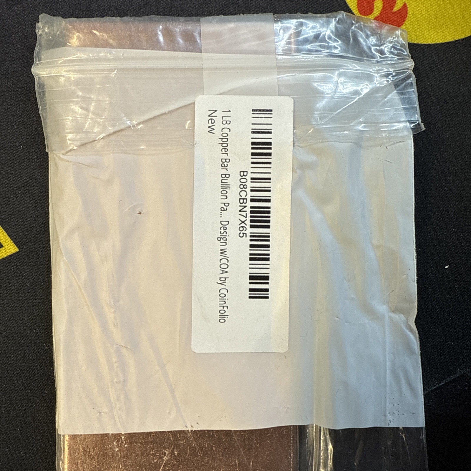 • 1 Pound Copper Bullion Bar .999 - PA Design w/COA