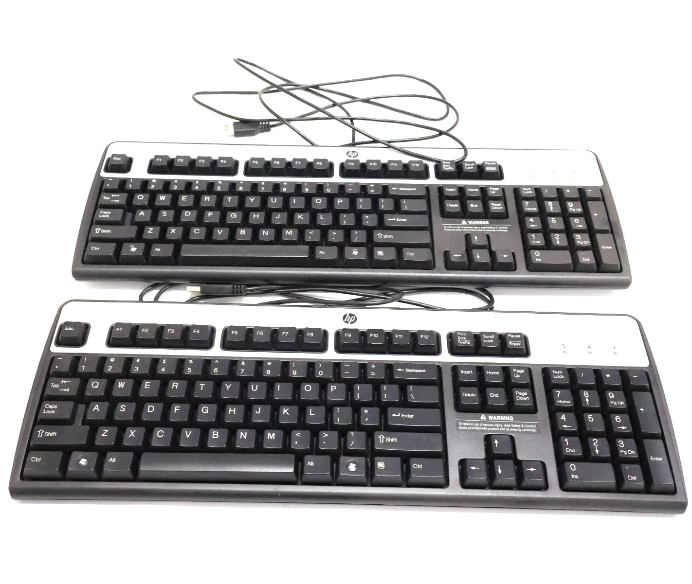 Lot of 2 HP KU-0316 434821-002 Black/Silver USB Wired Keyboard 104-Key