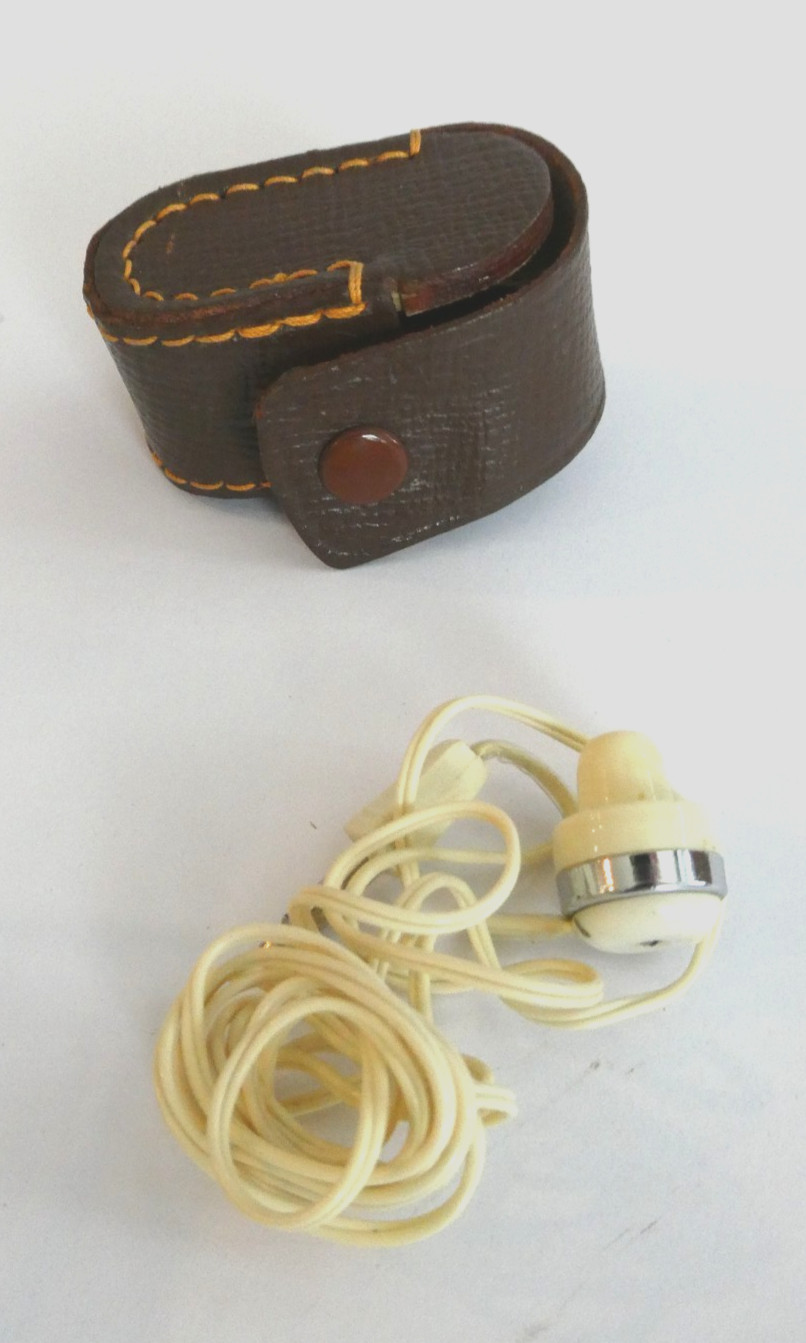 • VTG 1970 s Mono Single Ear Buds Listening Earphone Transistor With Case WORKS