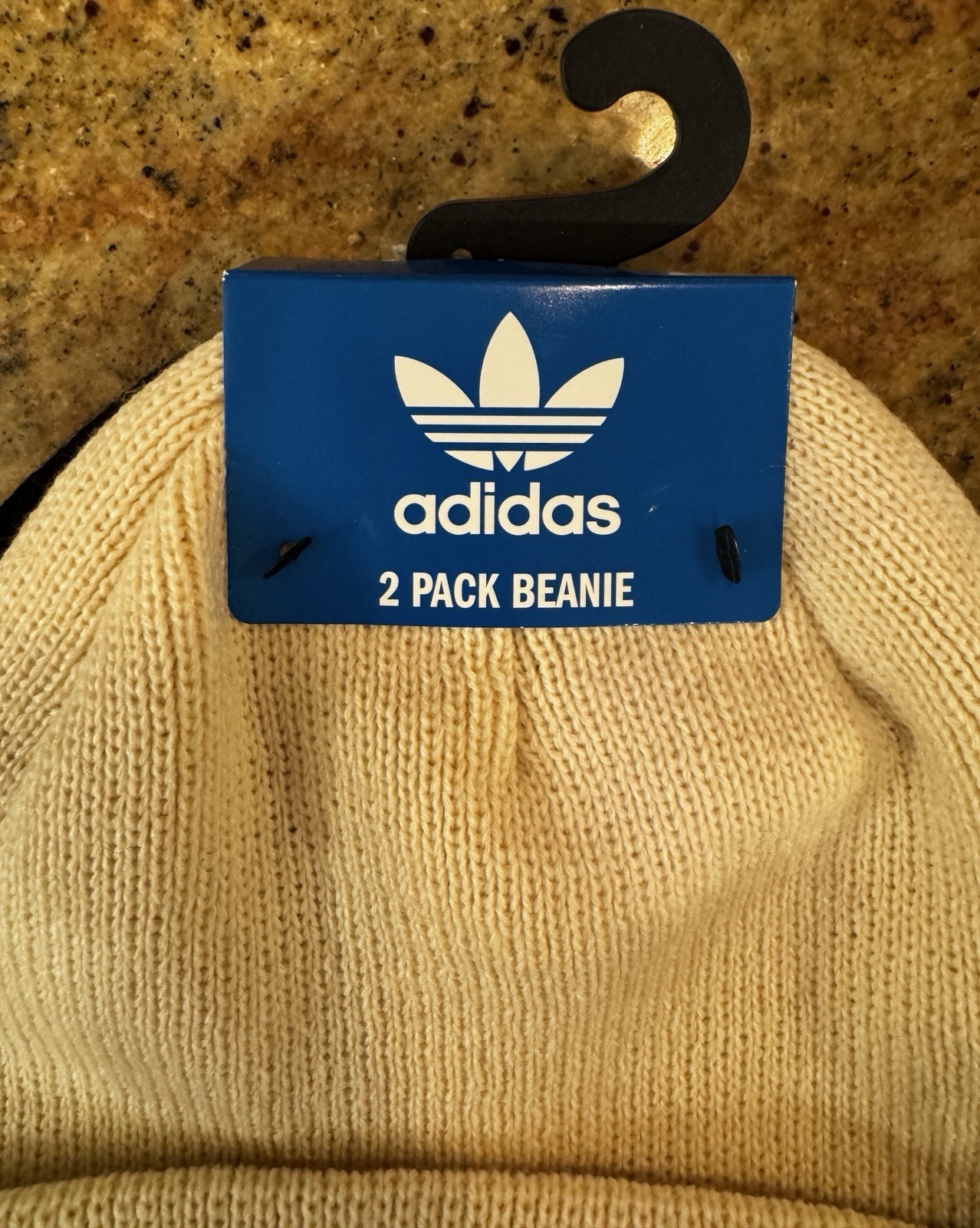 Adidas Unisex Knit Beanies with Cuff 2-Pack Solid Black Solid Cream New