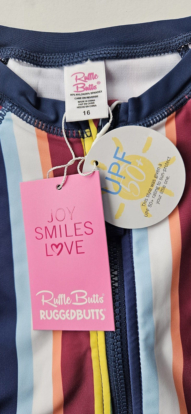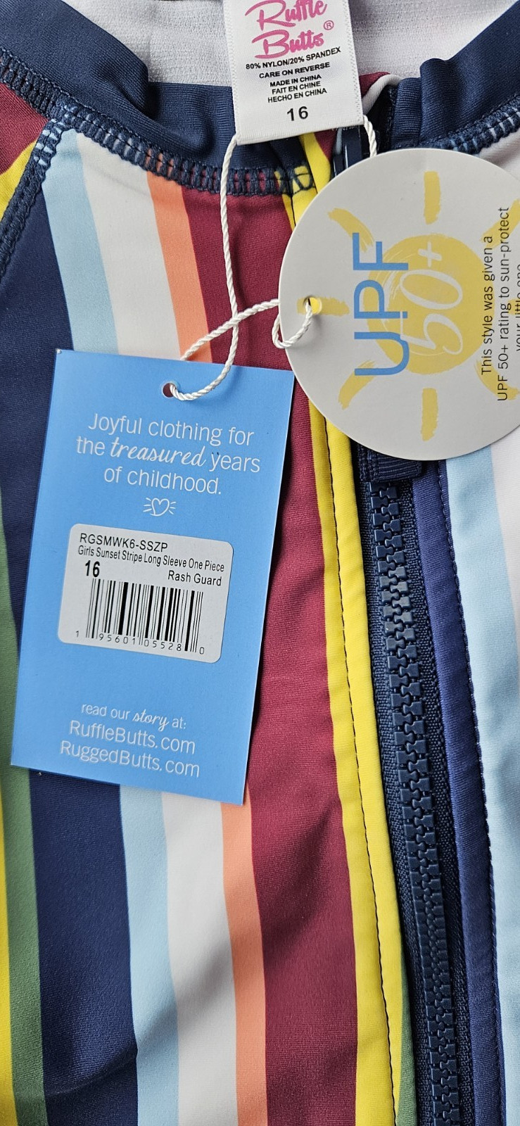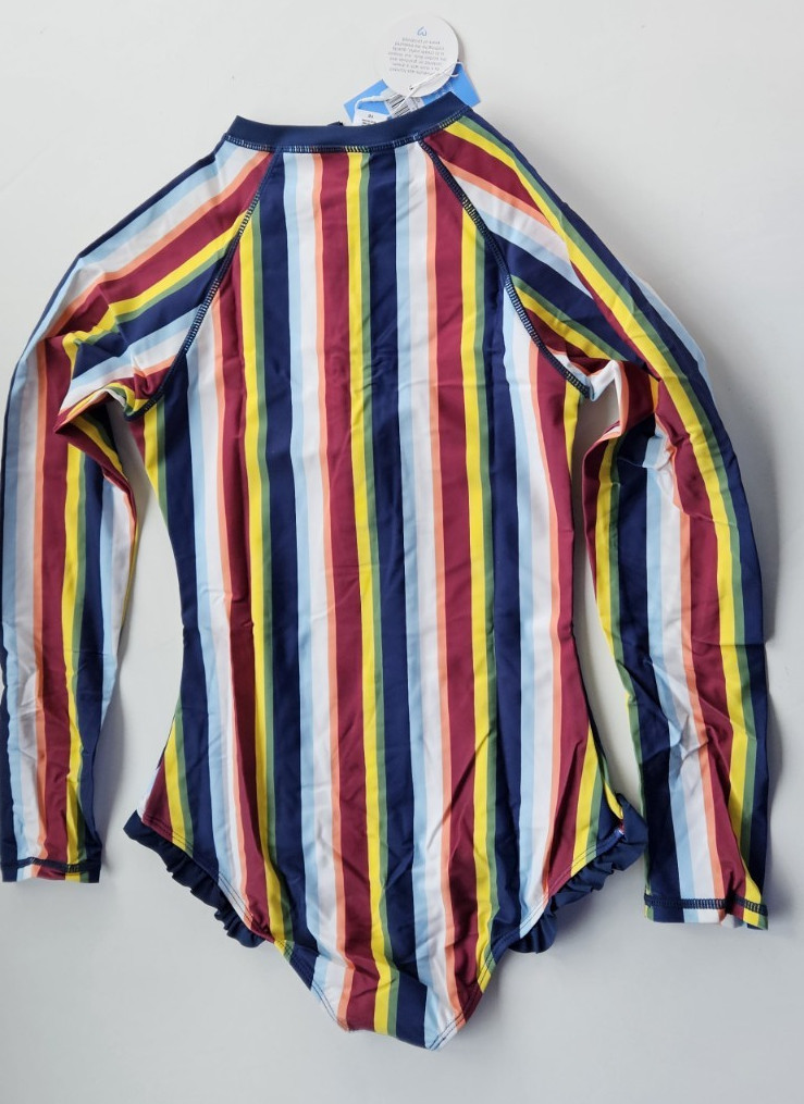 как выглядит Rufflebutts Girls 16 1 Pc Long Sleeve Rash Guard Swimsuit Sunset Stripe NWT фото