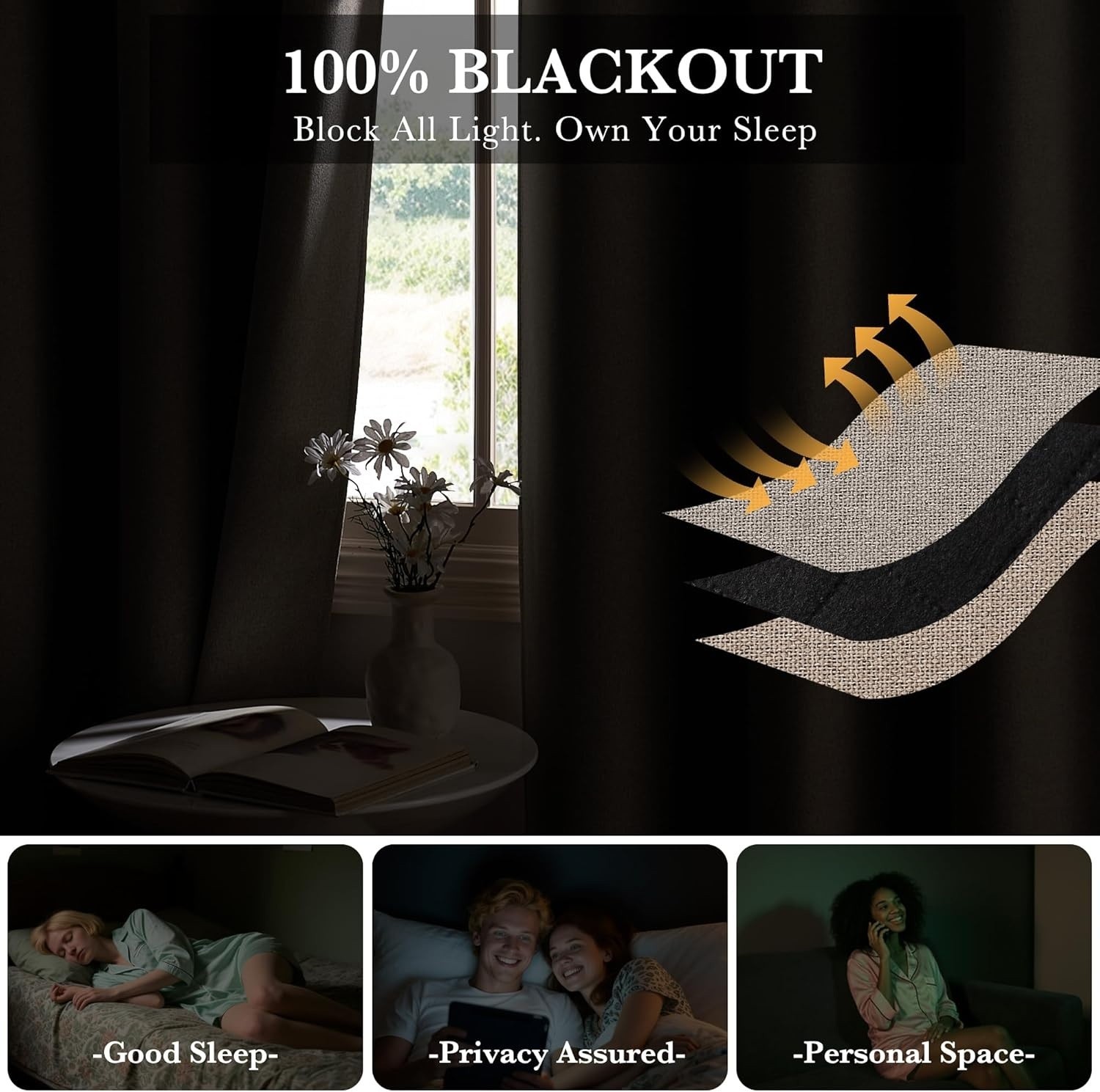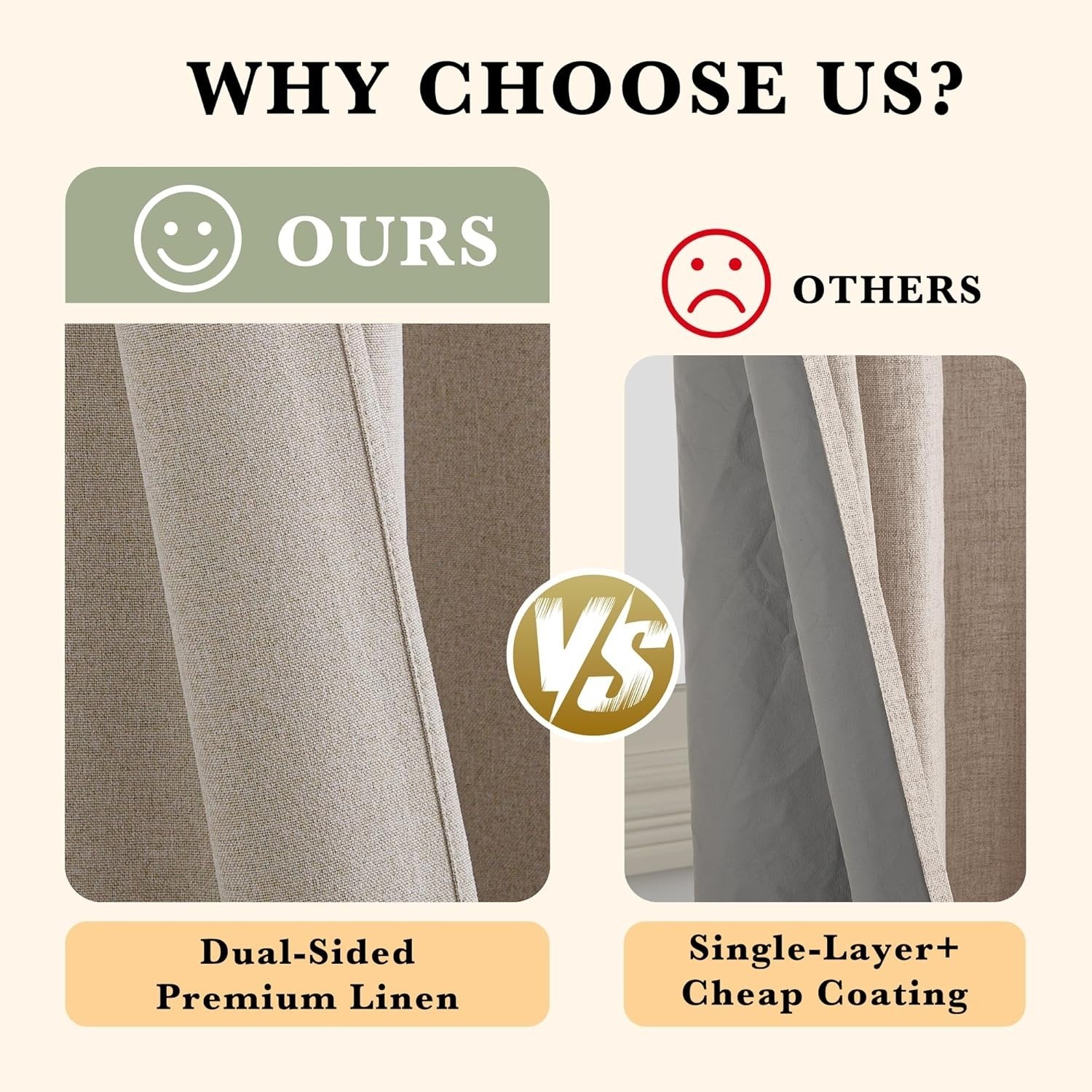 RYB HOME 100 Blackout Linen Curtains For Sliding Glass Doors Extra Wide Thermal