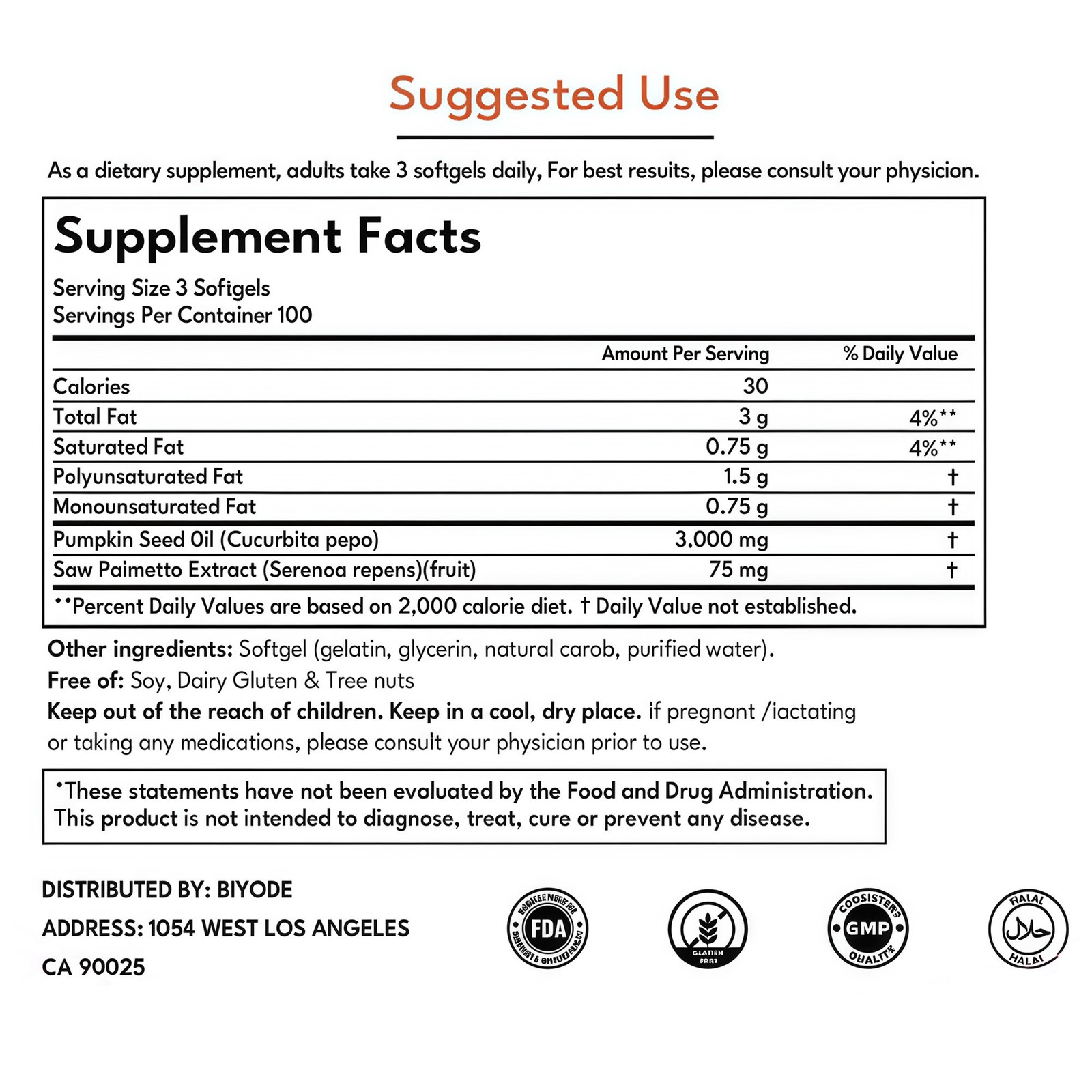 Ingredients: Pumpkin Seed, Pumpkin Seed Oil, Saw Palmetto, Gotu Kola
