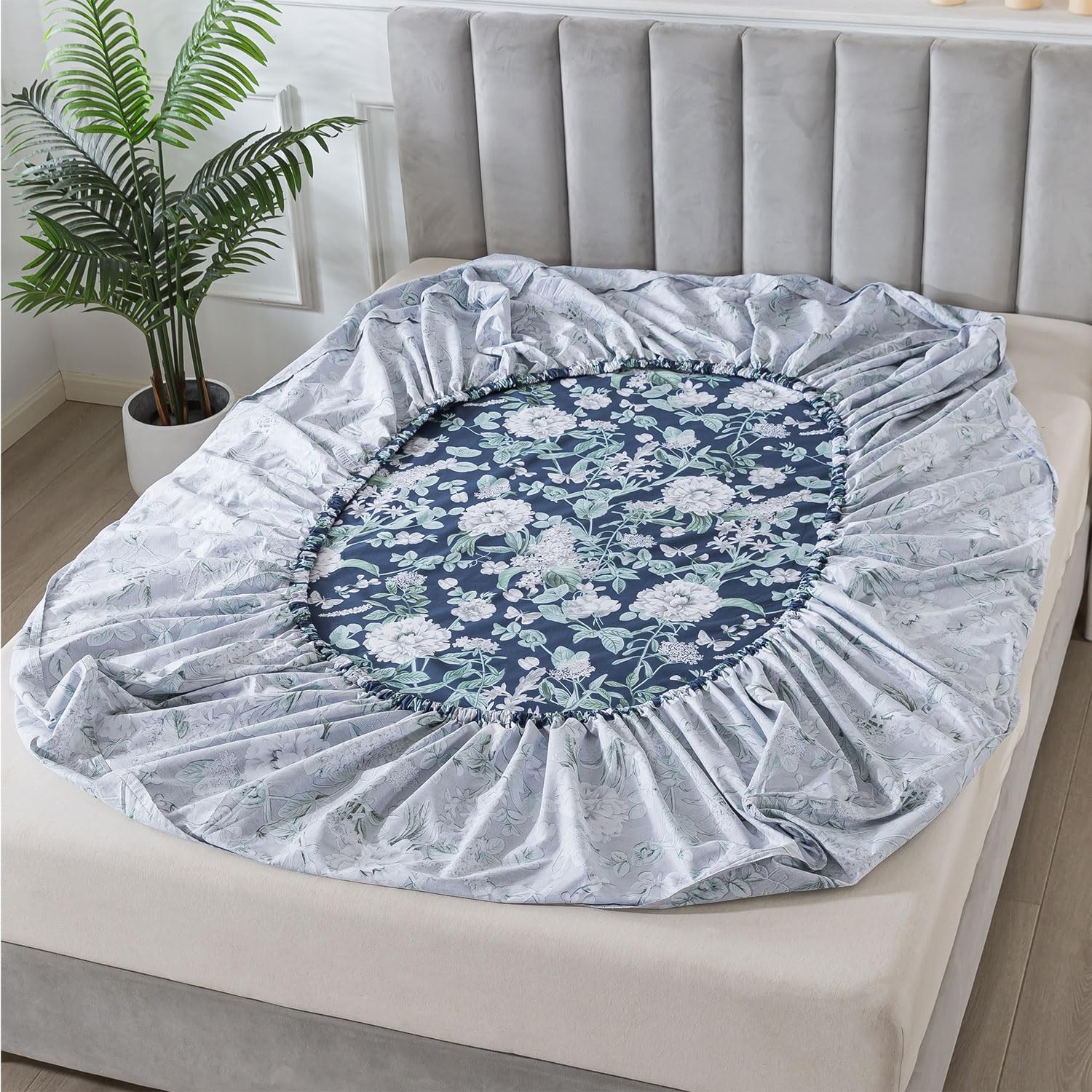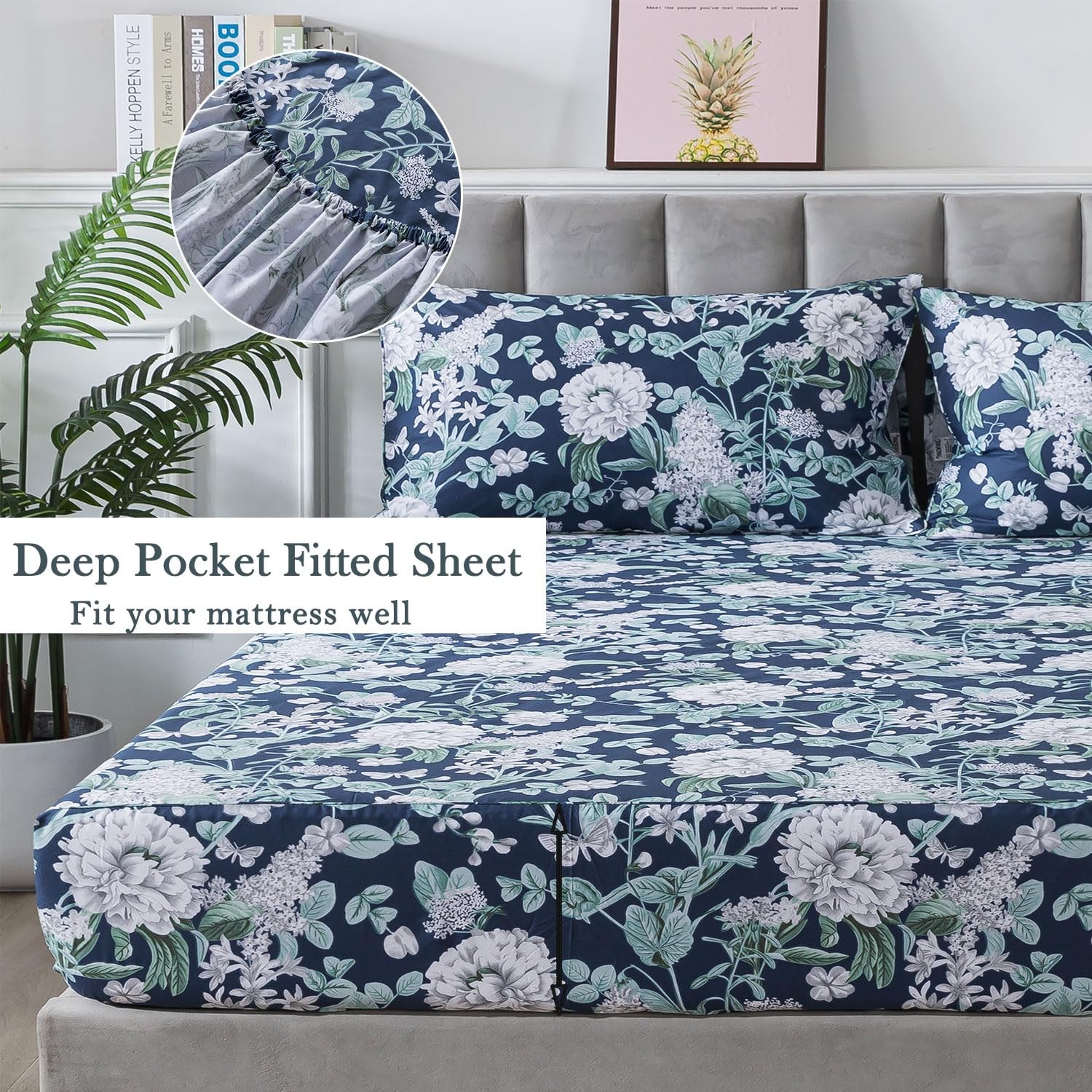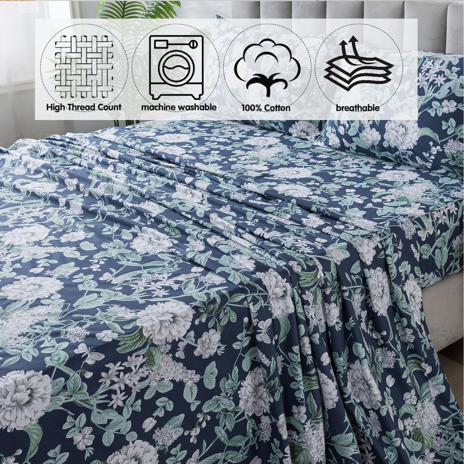 King Sheets Set 100 Cotton Floral Bed Sheets Deep Pocket Fitted , Fashion Ho...