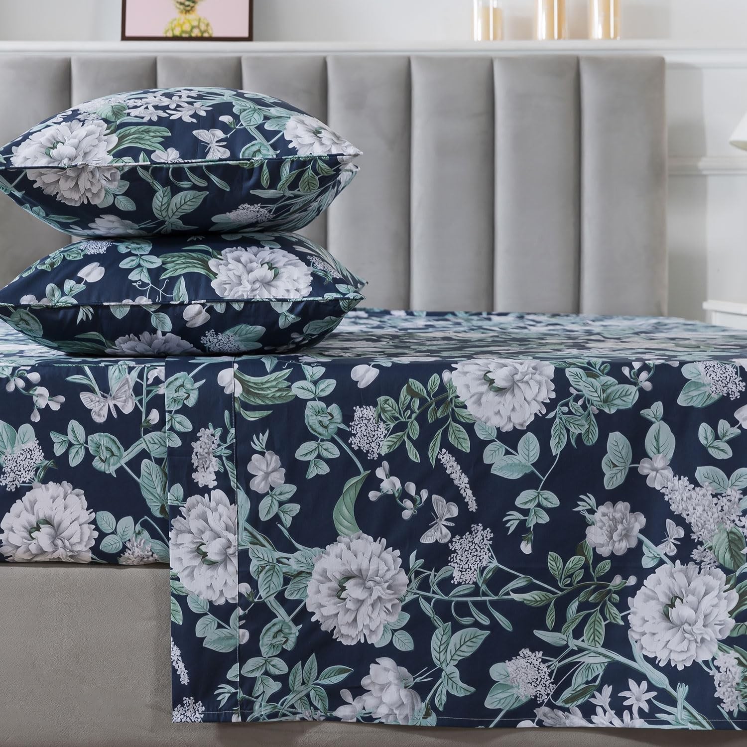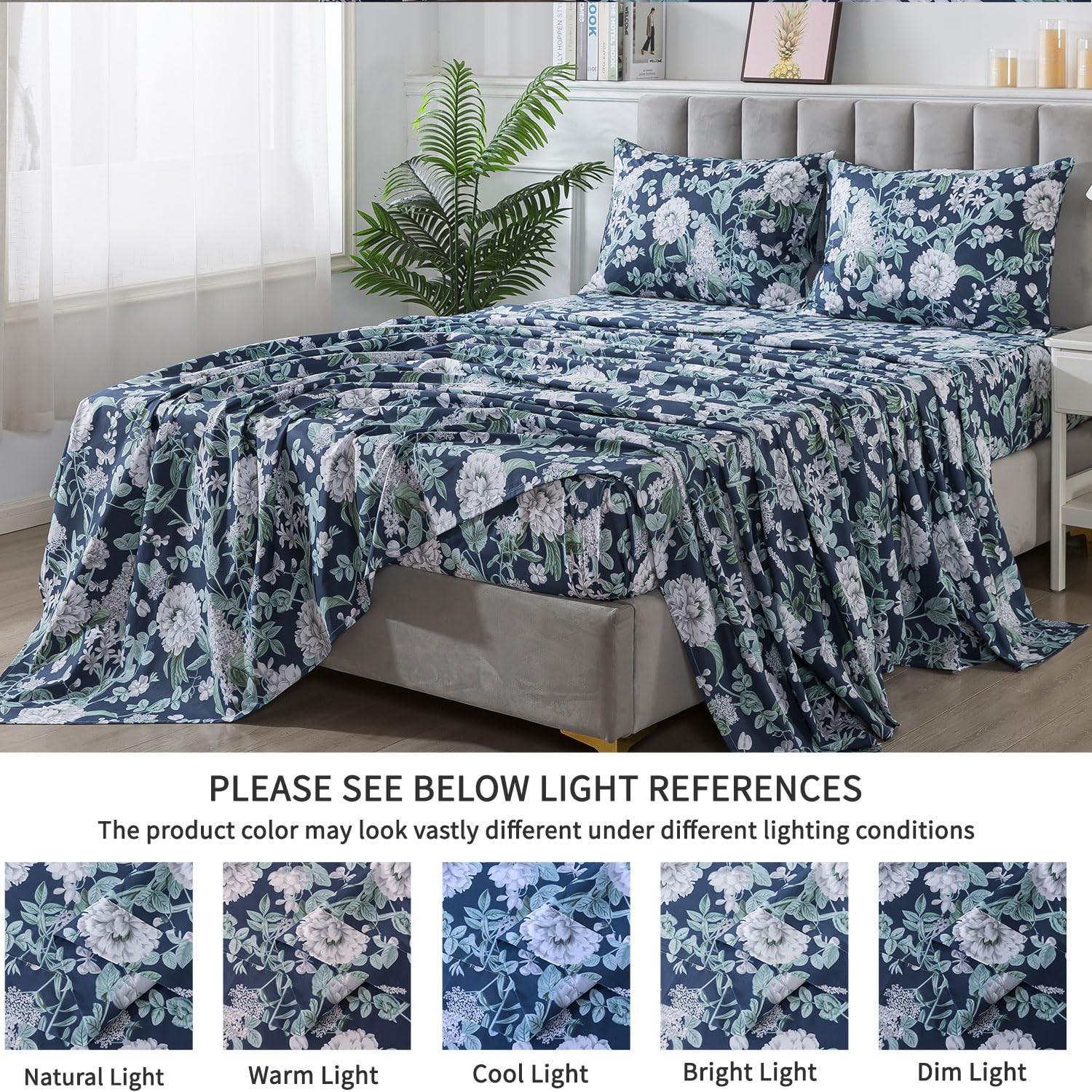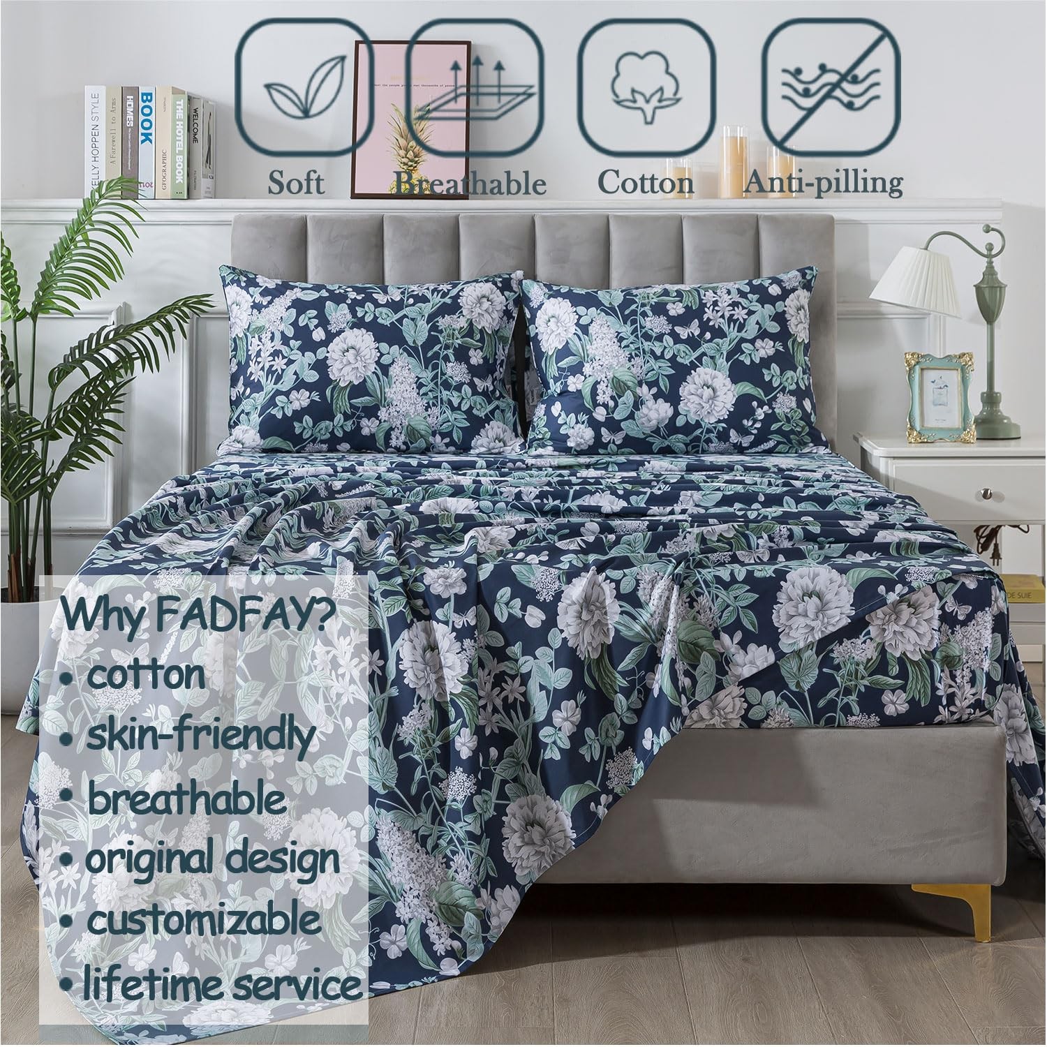 King Sheets Set 100 Cotton Floral Bed Sheets Deep Pocket Fitted , Fashion Ho...