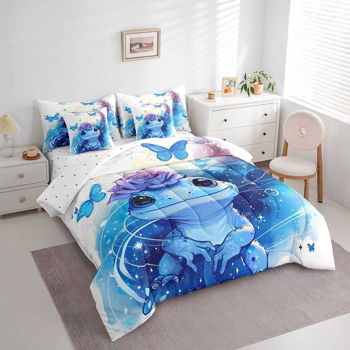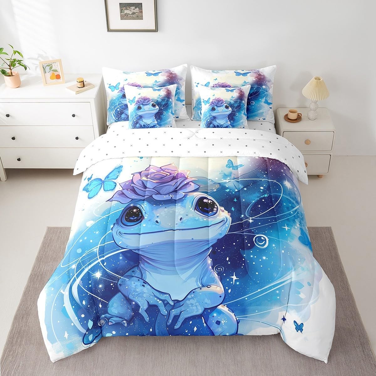 Comforters Full Size Set with Sheets for Kids Cartoon Lizard - 7 Pieces Bed i...