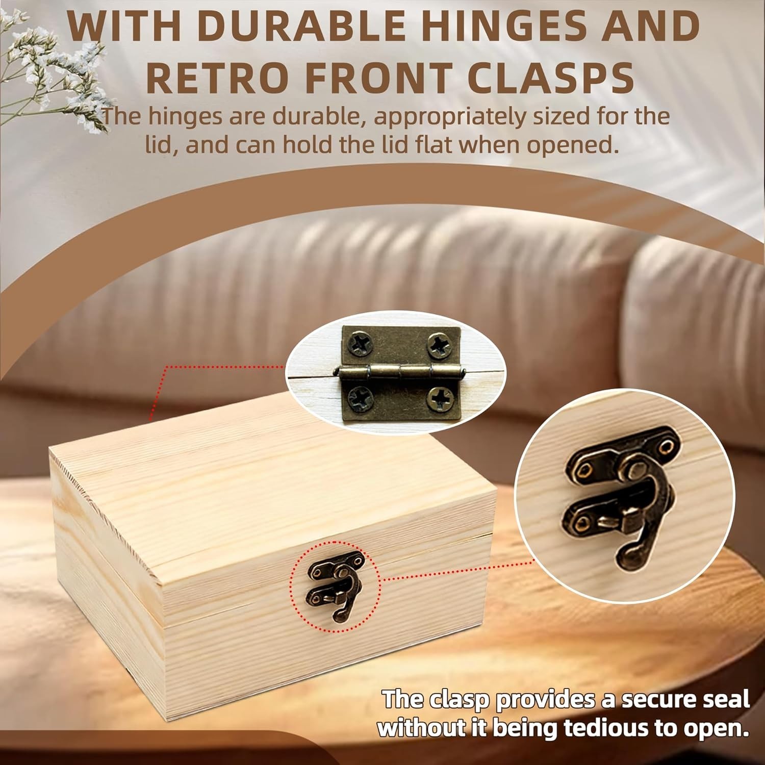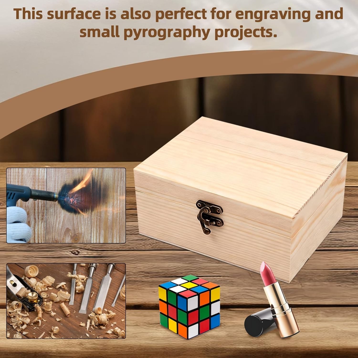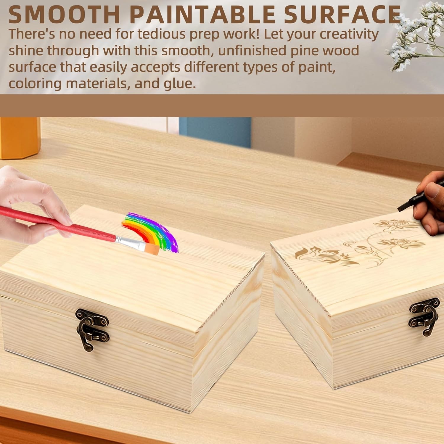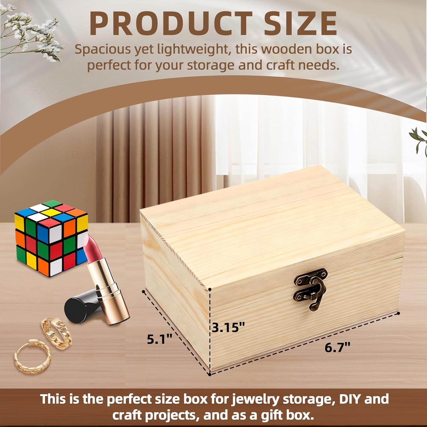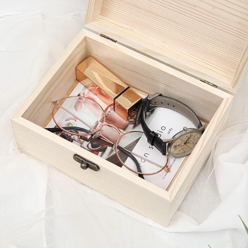 6.7x5.1x3.1 Unfinished Unpainted Wooden Box with Hinged Lid for Crafts DIY...