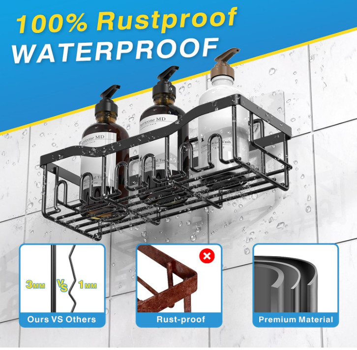 XL 5 Pack Adhesive Shower Caddy Organizer No Drill Bathroom Kitchen Shelf