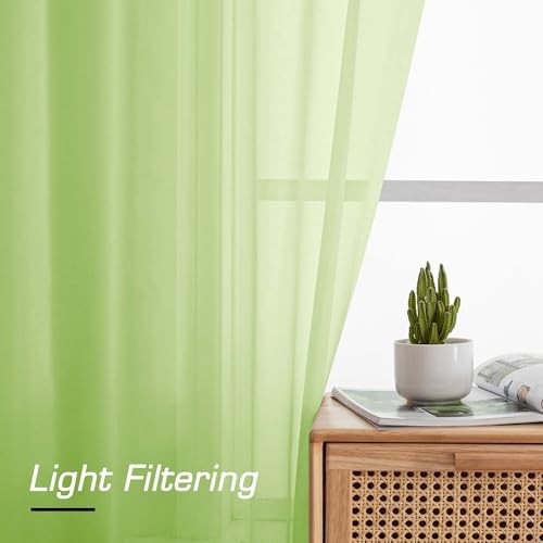 Sheer Curtains 84 Inches Long, Light Filtering 42W x 84L Pack of 2 Lime