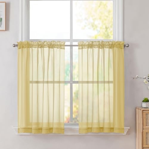 Short Sheer Kitchen Cafe Curtains 36 x 42 Inch, 42W x 36L Pack of 2 Yellow