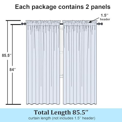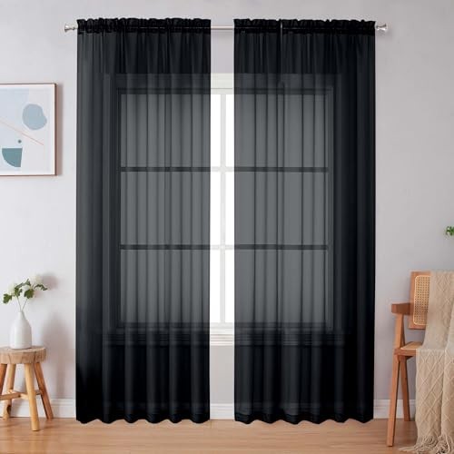 Sheer Curtains 84 Inches Long, Light Filtering 59W x 84L Pack of 2 Black