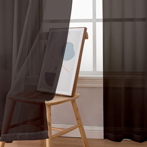 Short Sheer Curtains 45 Inch Length for 42W x 45L Pack of 2 Chocolate