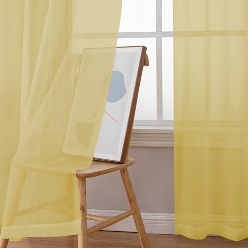 Sheer Curtains 84 Inches Long, Light Filtering 42W x 84L Pack of 2 Yellow