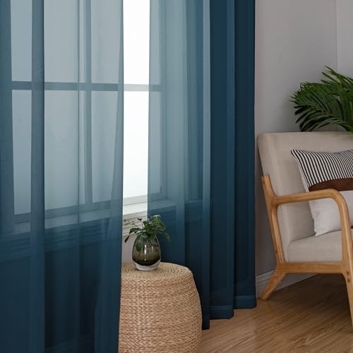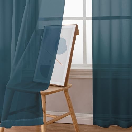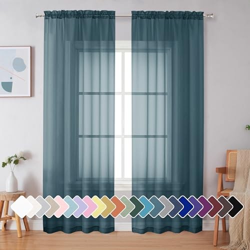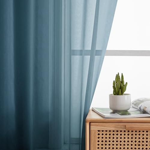 Sheer Curtains 90 Inches Long 2 Panels, 42W x 90L Pack of 2 Dusty Blue