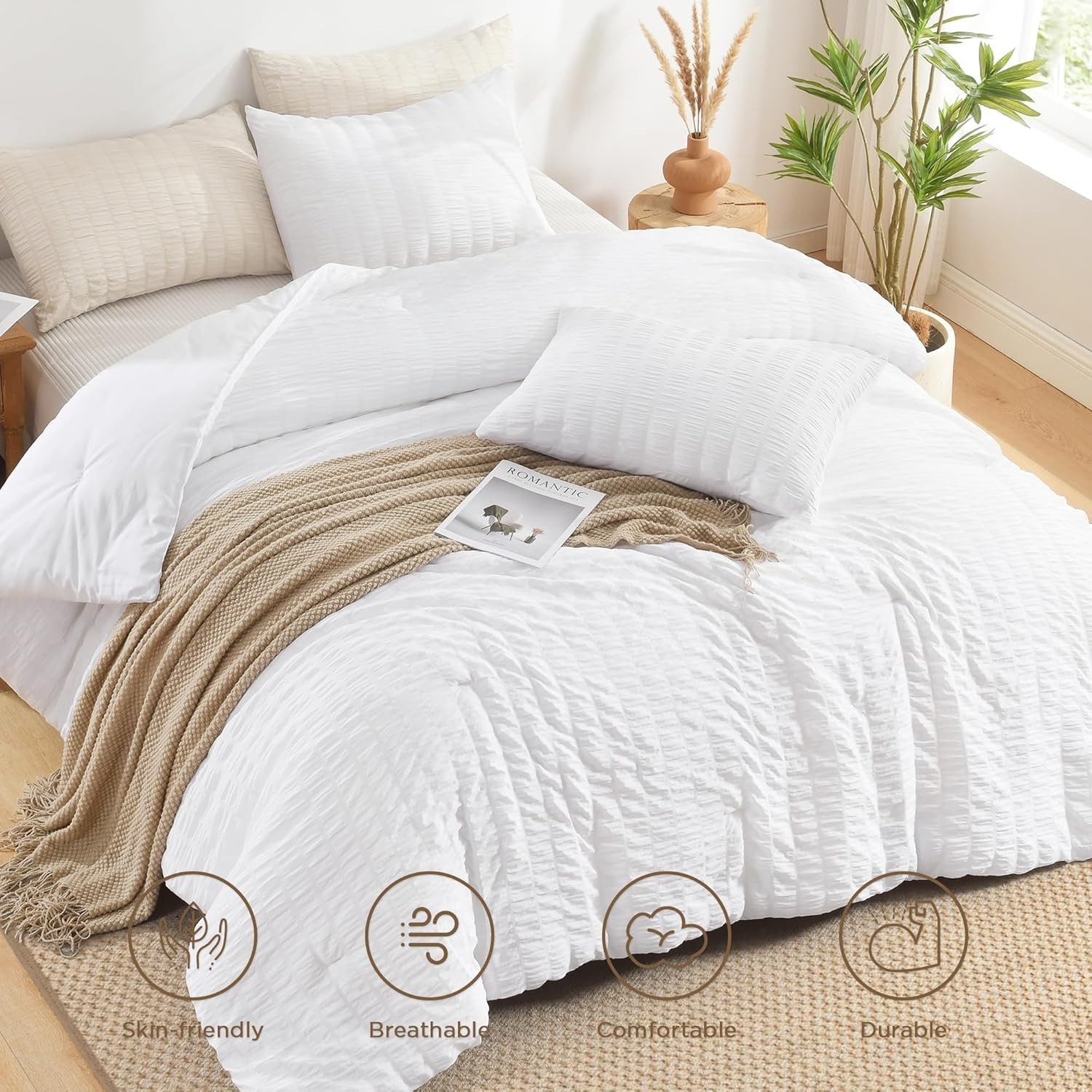 Queen Comforter Set 90x90 - Lightweight Seersucker Microfiber Pillowcases