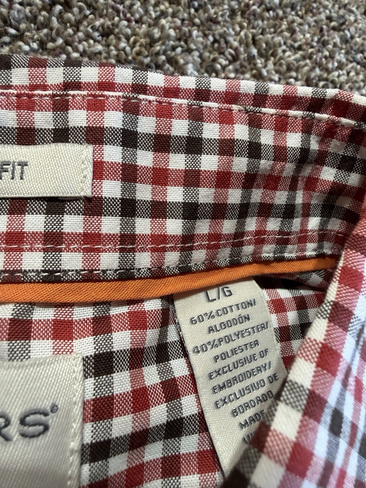 Dockers Classic Fit Mens Button Down Shirt Large Gingham Plaid Cotton Blend Dres