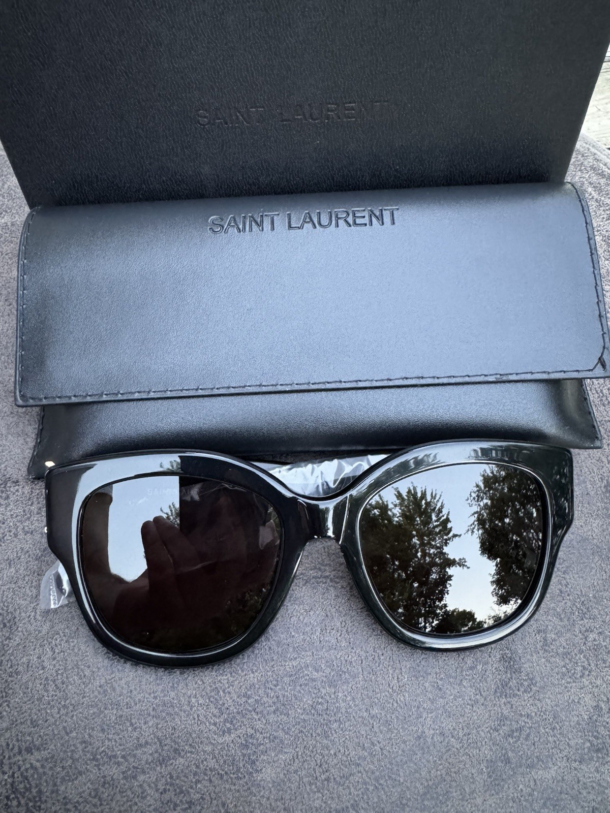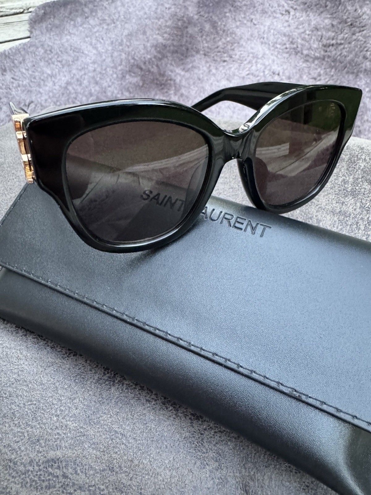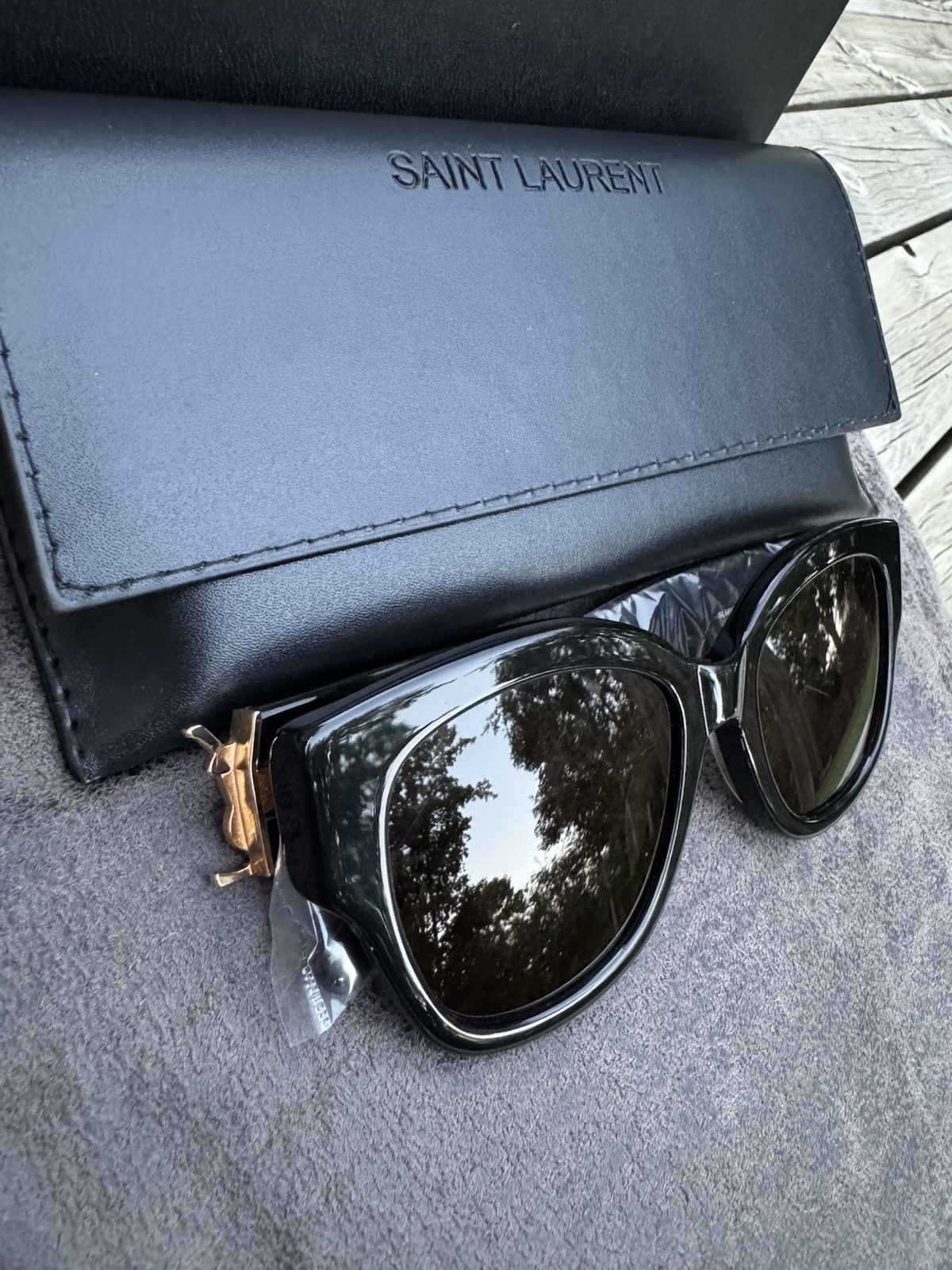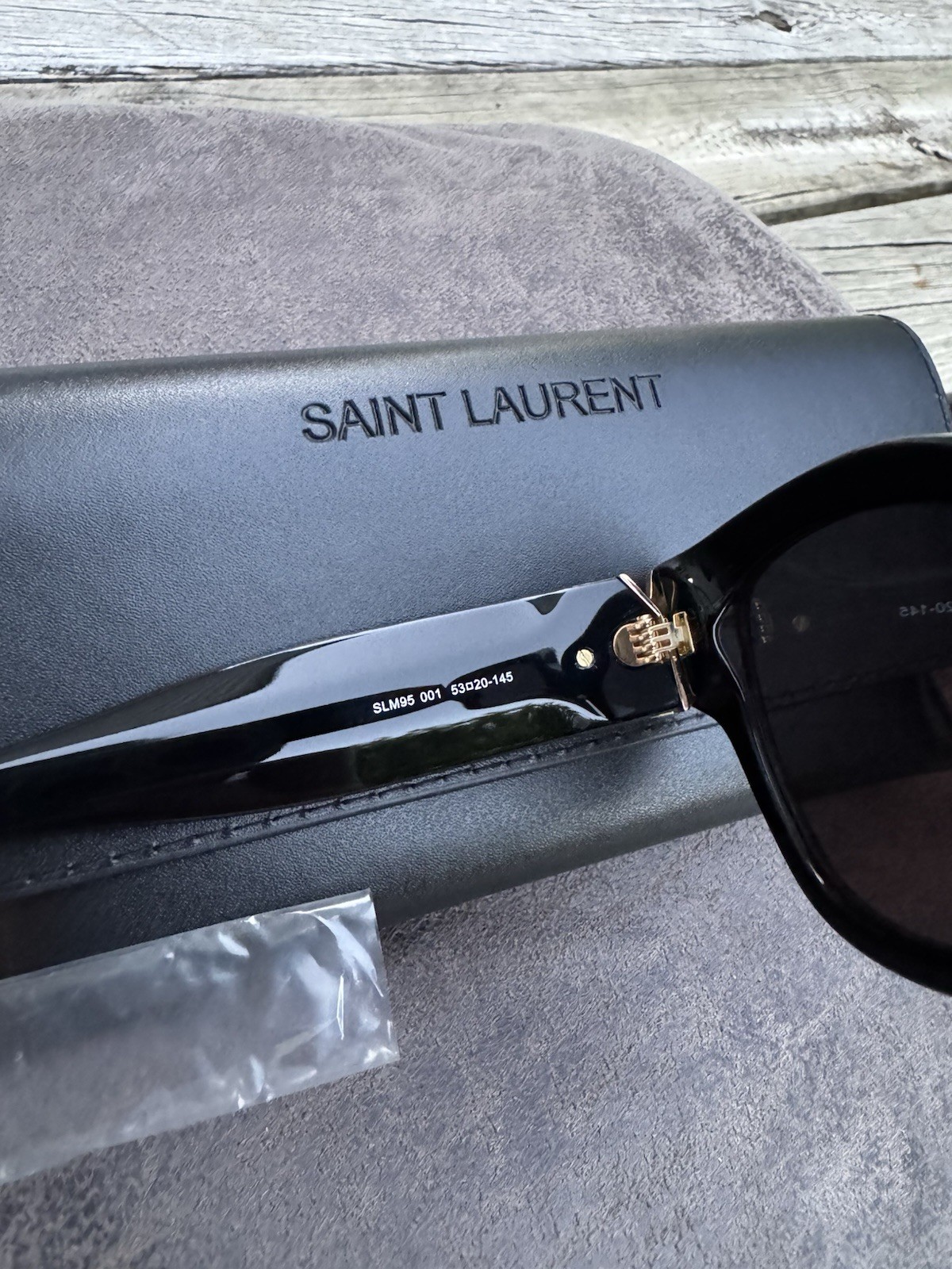 как выглядит New Saint Laurent SL M95/F 001 Black Gold Dark Grey Lenses Sunglasses фото