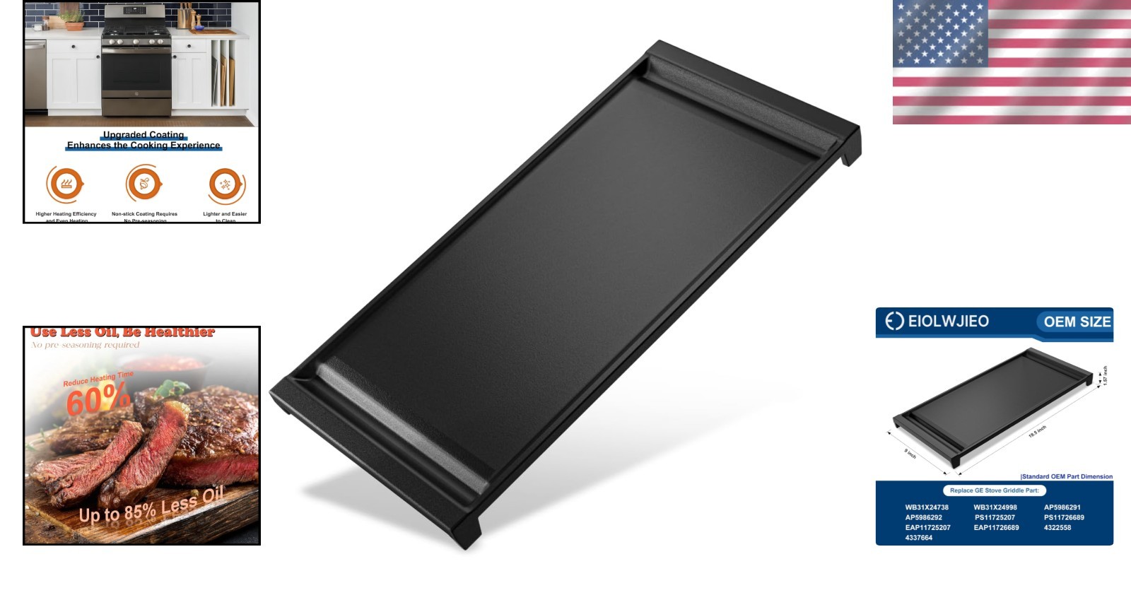 Upgraded WB31X24738 Aluminum Non-Stick Griddle for GE Gas Stoves - 19.5 x 9