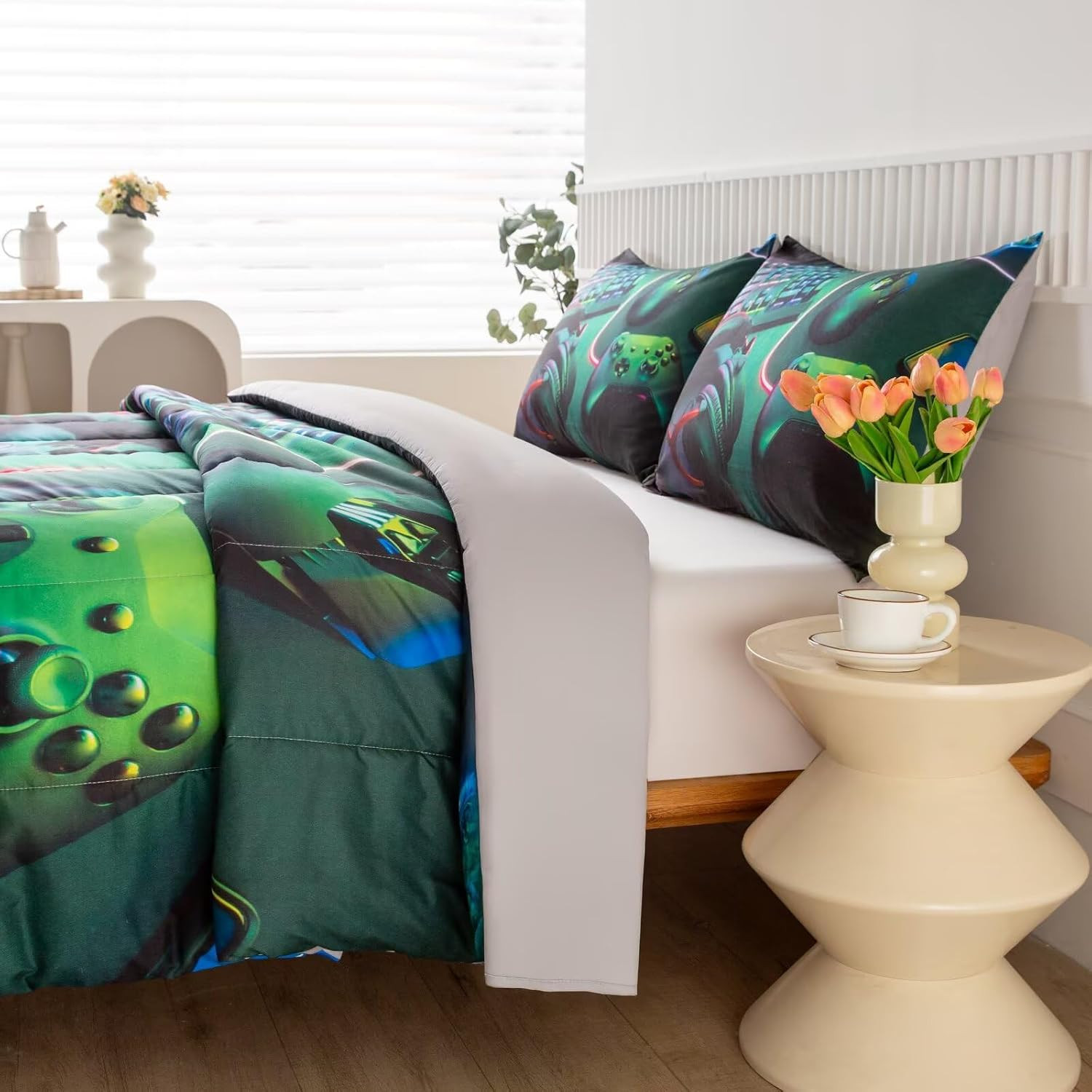 как выглядит Gamer Comforter Sets for Teen Boys,Gaming Bedding Sets Queen,Video Game Bedsprea фото