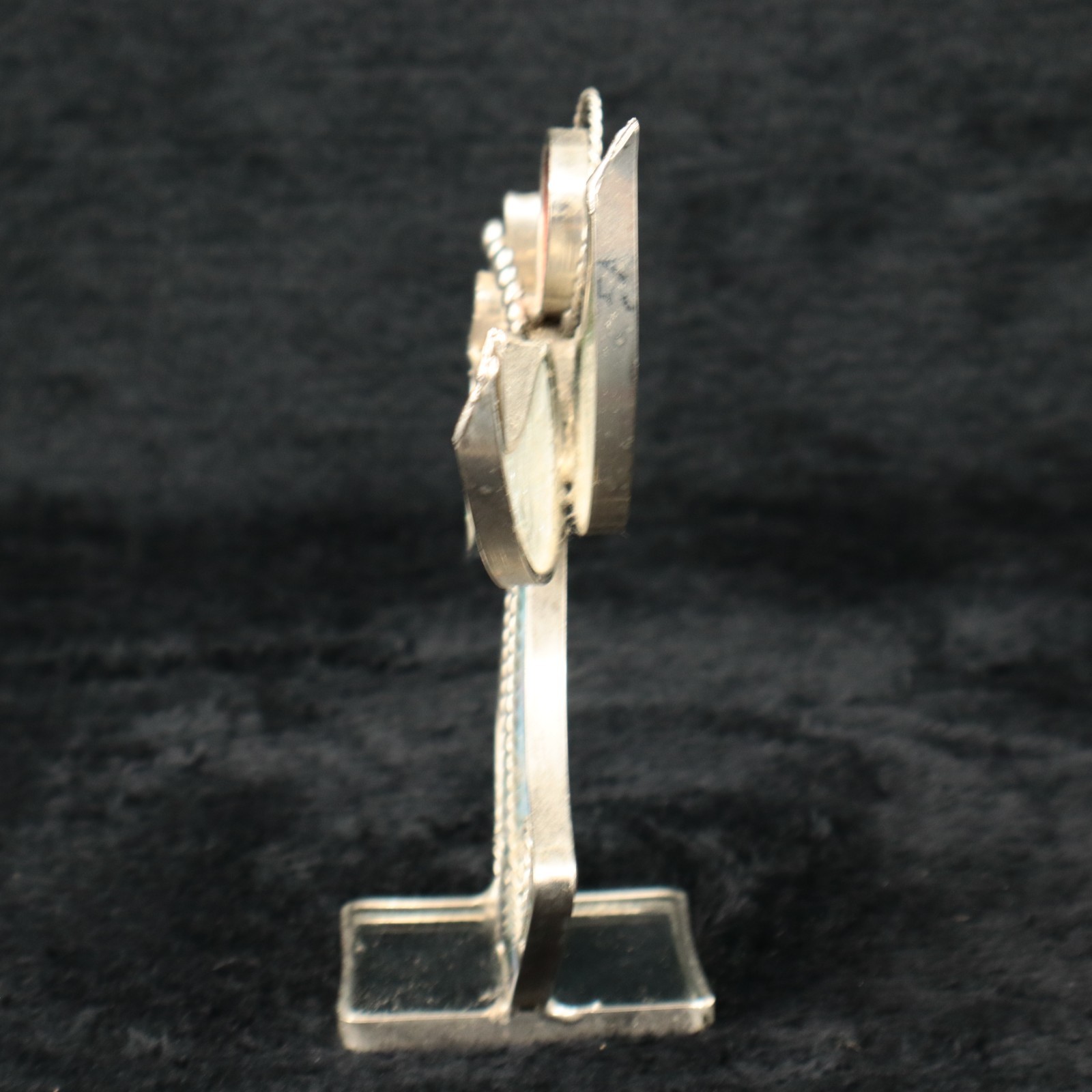 VTG Stained Glass Angel Figurine with Trumpet Blue Opalescent Glass 6.25