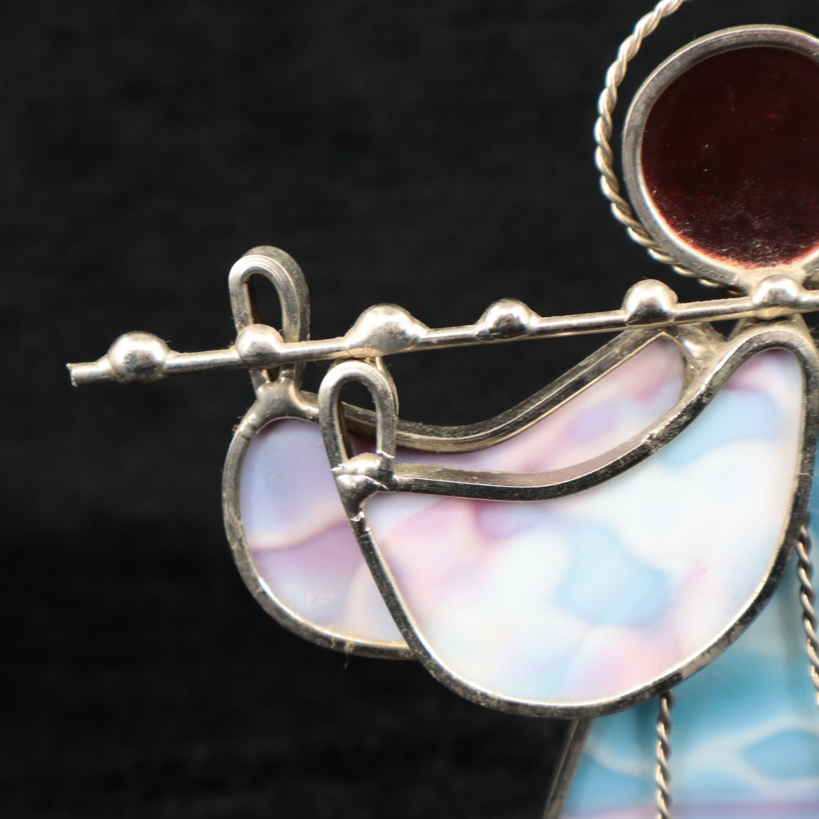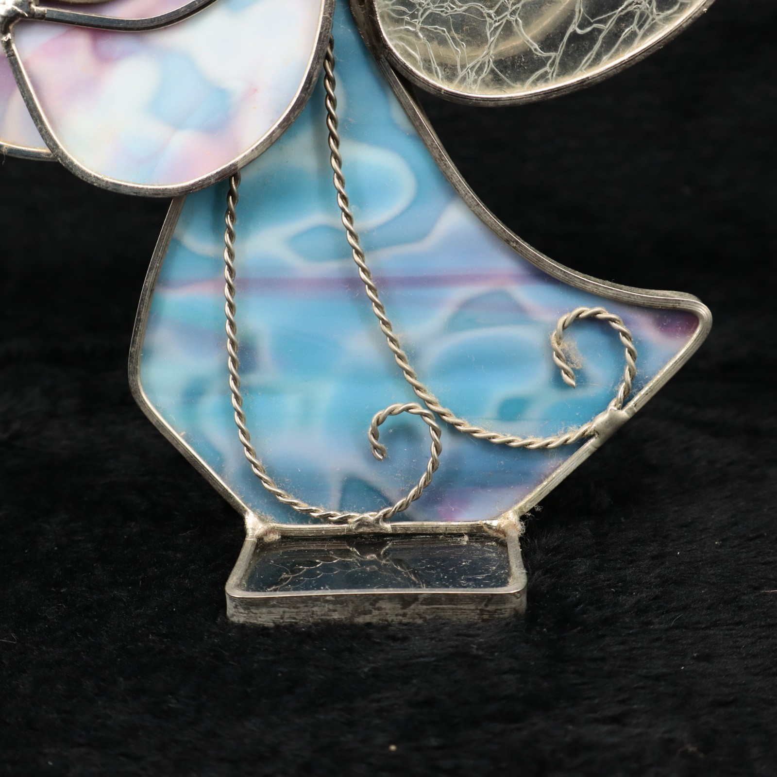 • VTG Stained Glass Angel Figurine with Trumpet Blue Opalescent Glass 6.25"