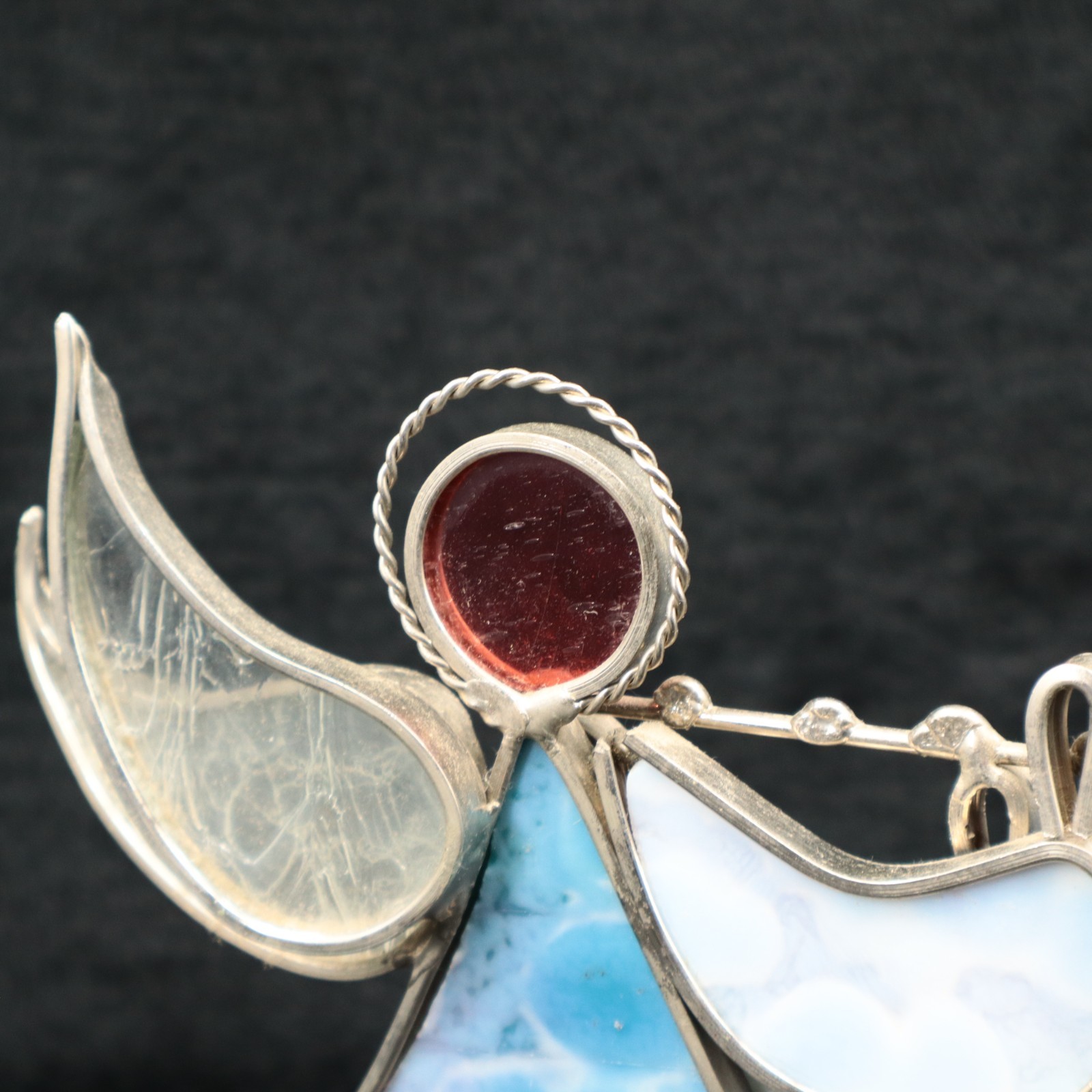 как выглядит VTG Stained Glass Angel Figurine with Trumpet  Blue Opalescent Glass  6.25" фото