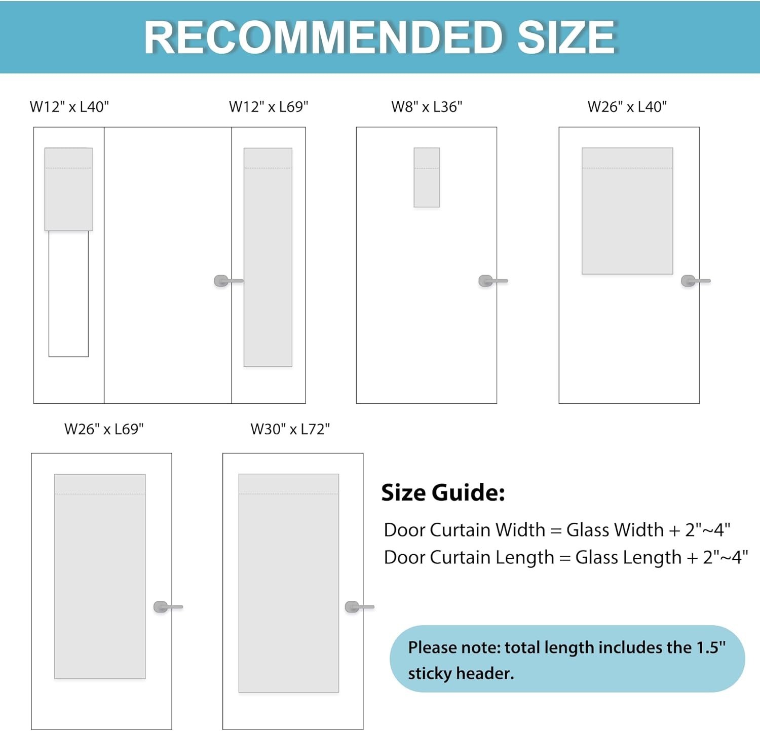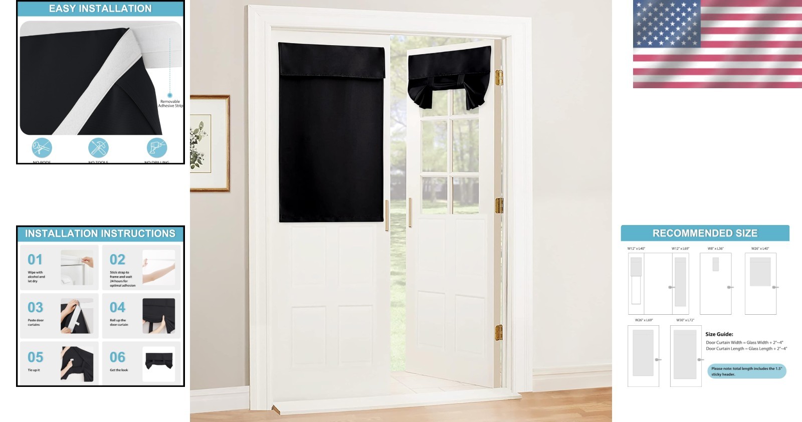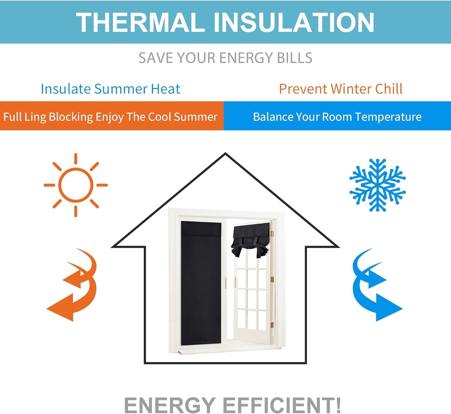 Blackout French Door Curtain with Adhesive Mount, Thermal Insulated, Adjustab...