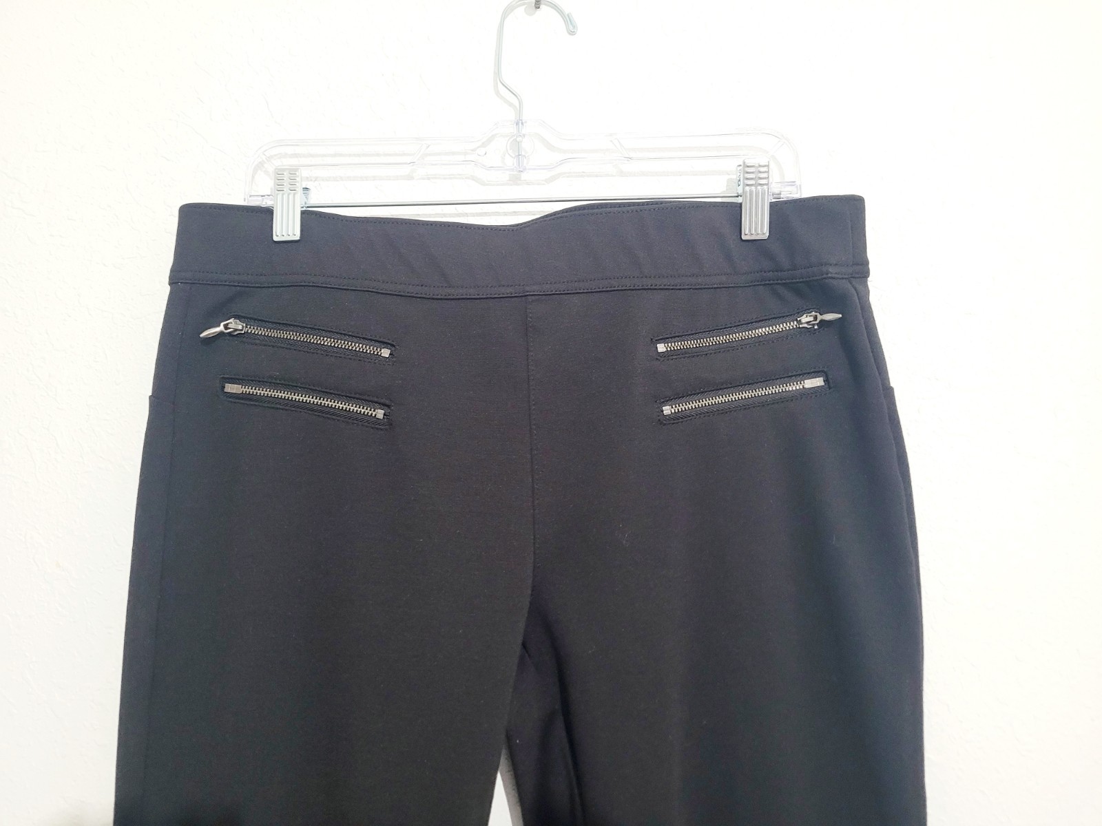 как выглядит Maurices Black Pull-On Pants Large Short L Zip Pocket Stretch Comfort Trousers фото