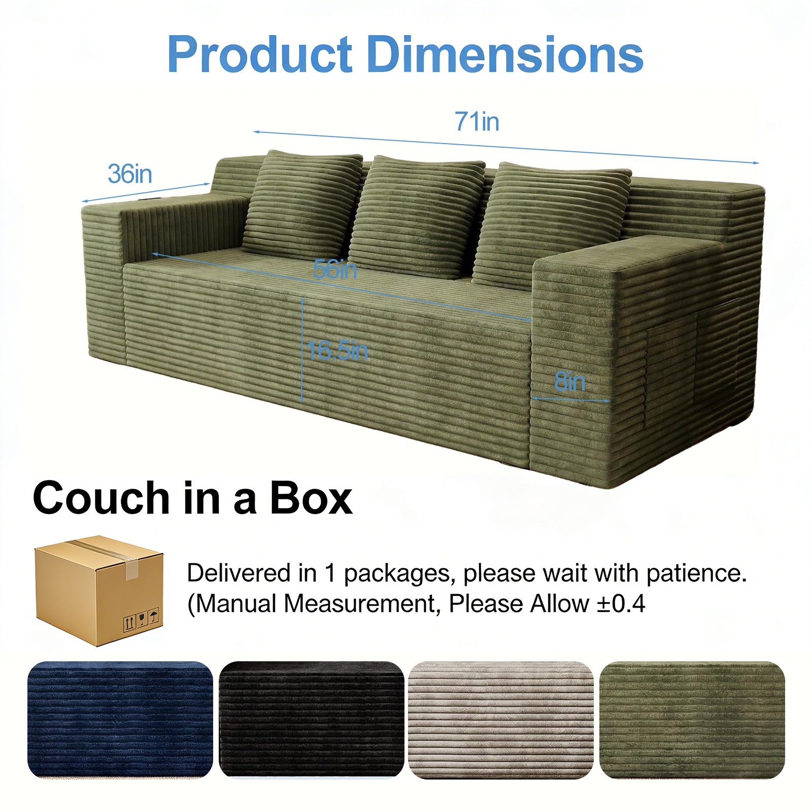 71 Inch L Shaped Sectional Sofa Corduroy Fabric Deep Seat Chaise Couch No Assemb