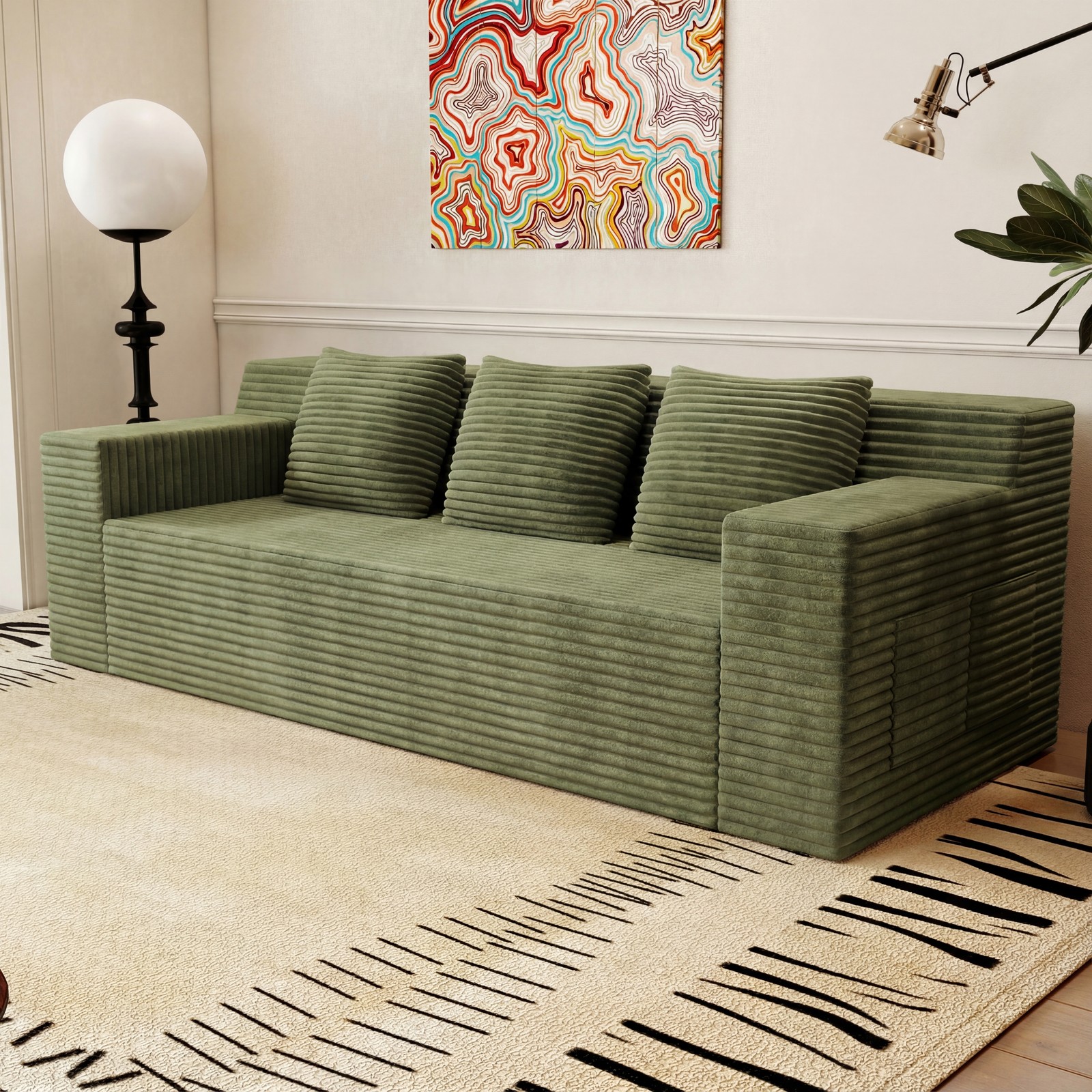 как выглядит 71 Inch L Shaped Sectional Sofa Corduroy Fabric Deep Seat Chaise Couch No Assemb фото