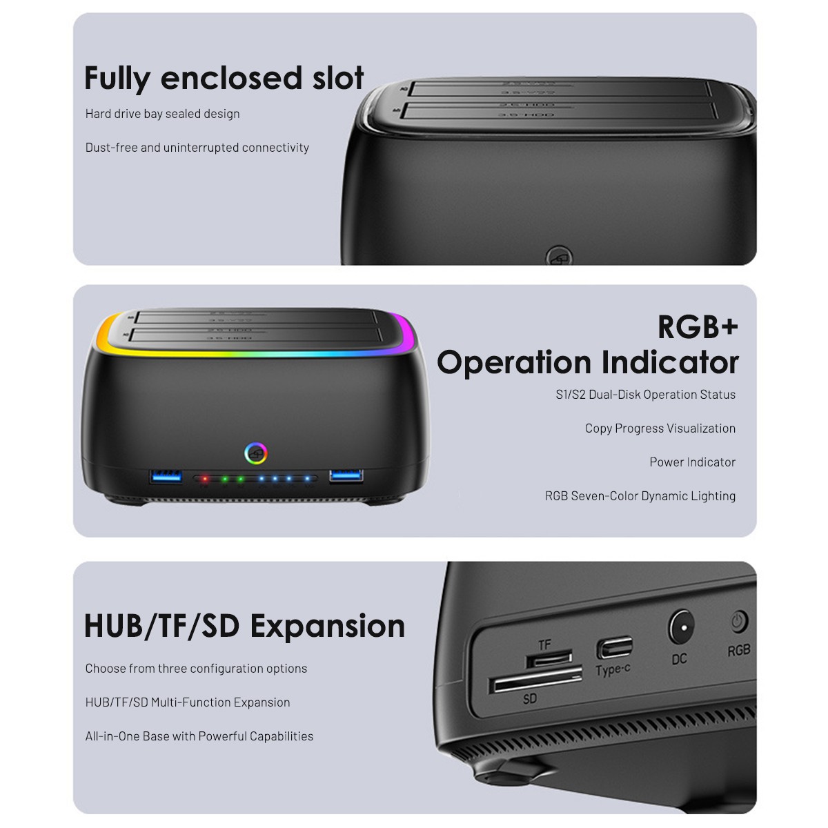 Особенности: hard drive copying, Hard drive reading, HUB, SD/TF card reader