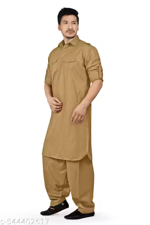 Men s Pathani Kurta Set/Traditional Cotton Blend Pathani Kurta Salwar Set