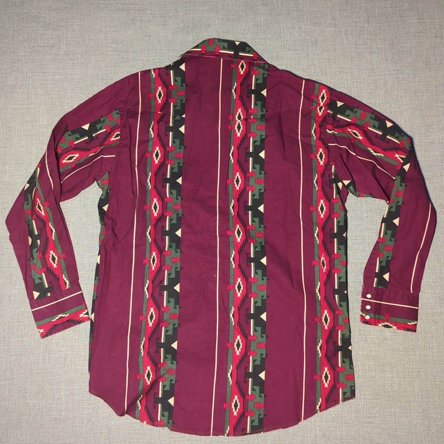 Vintage 90s Wrangler Western Shirt Mens L Aztec Pearl Snap Long Sleeve Cowboy