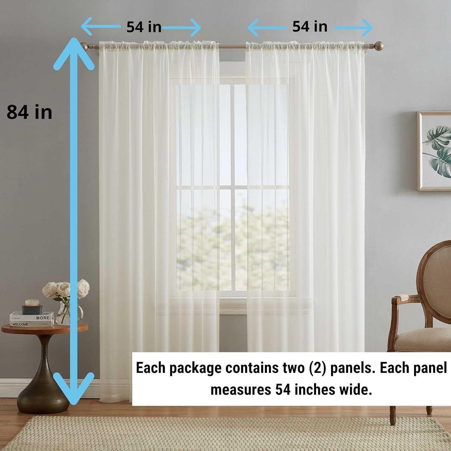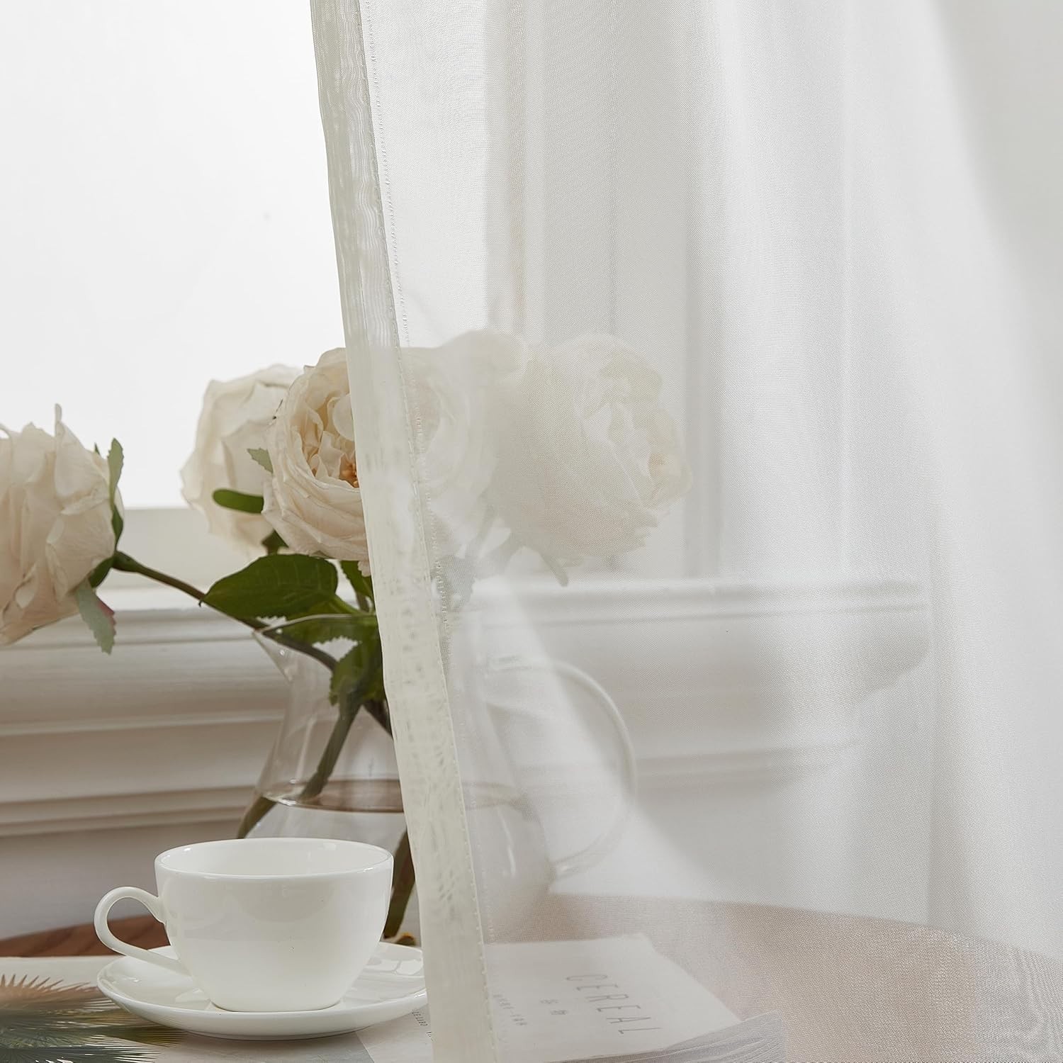 Elegant Ivory Sheer Voile Window Treatment Panels 54W x 84L - Modern Farmhouse