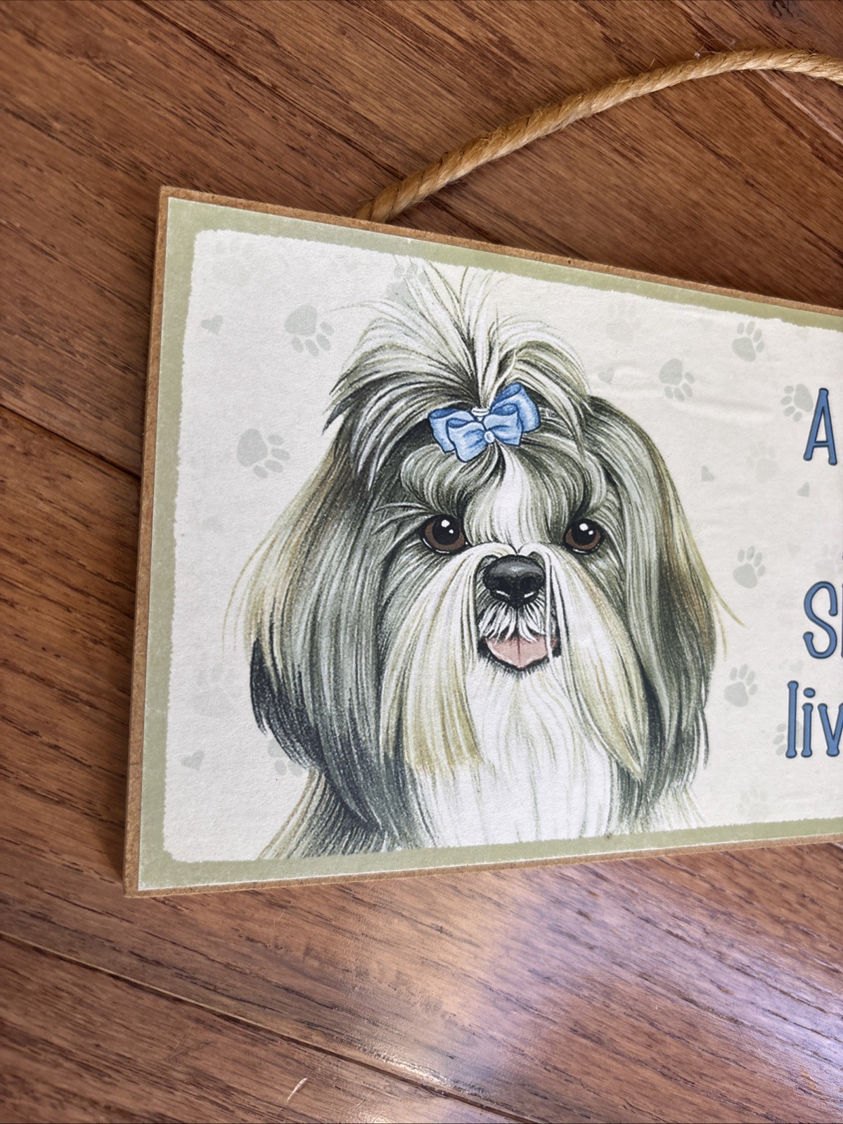 как выглядит Love Laughter A Spoiled Rotten Shih Tzu lives here 5x10 Wood Sign Plaque US фото