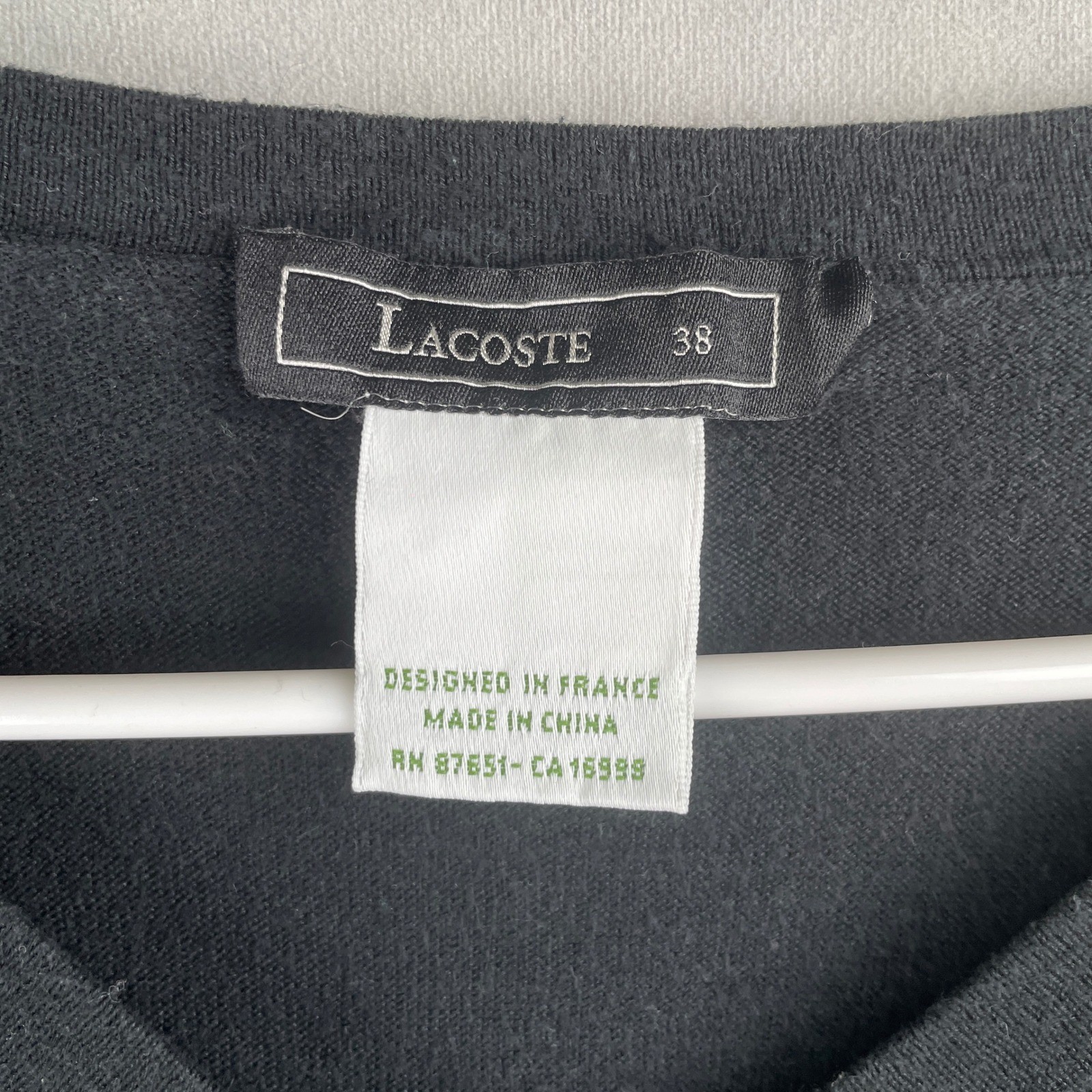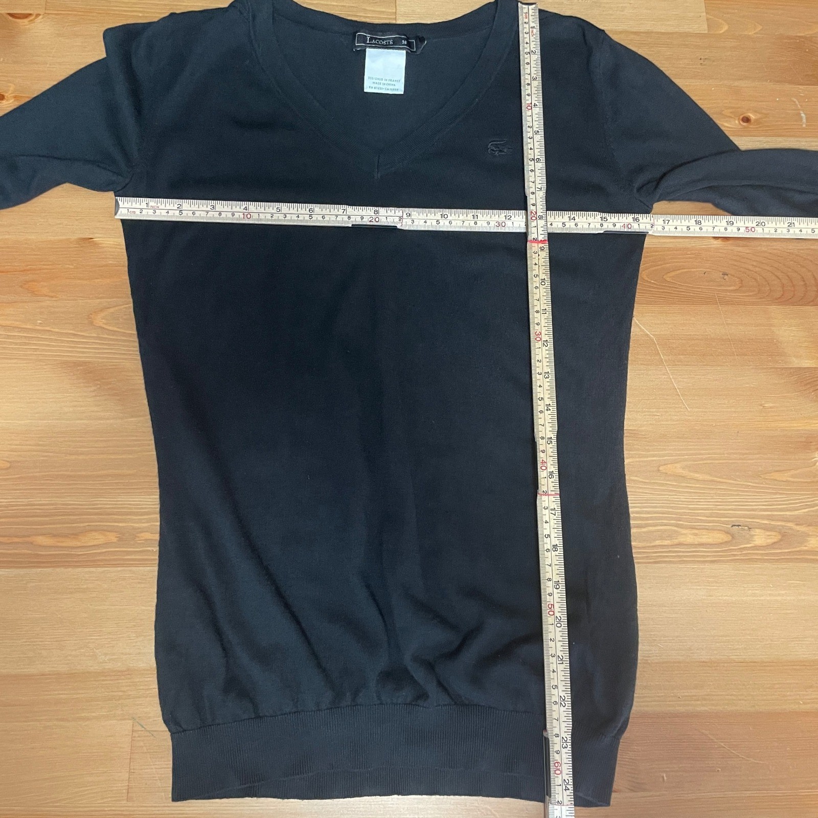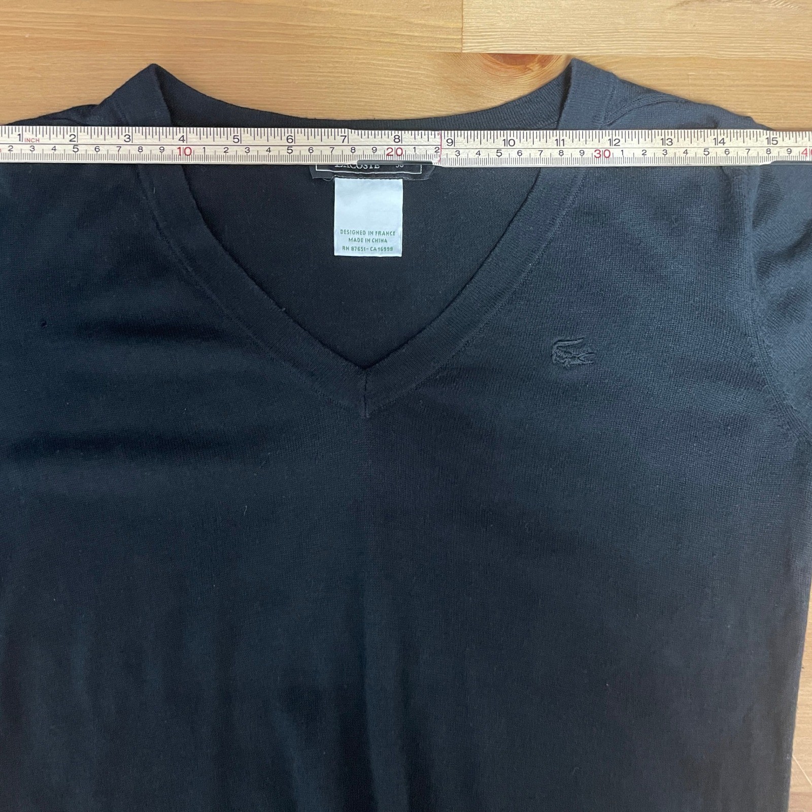 как выглядит Lacoste Black V Neck Long Sleeve Silk Cashmere Preppy Sweater 38/M Classic Croc фото