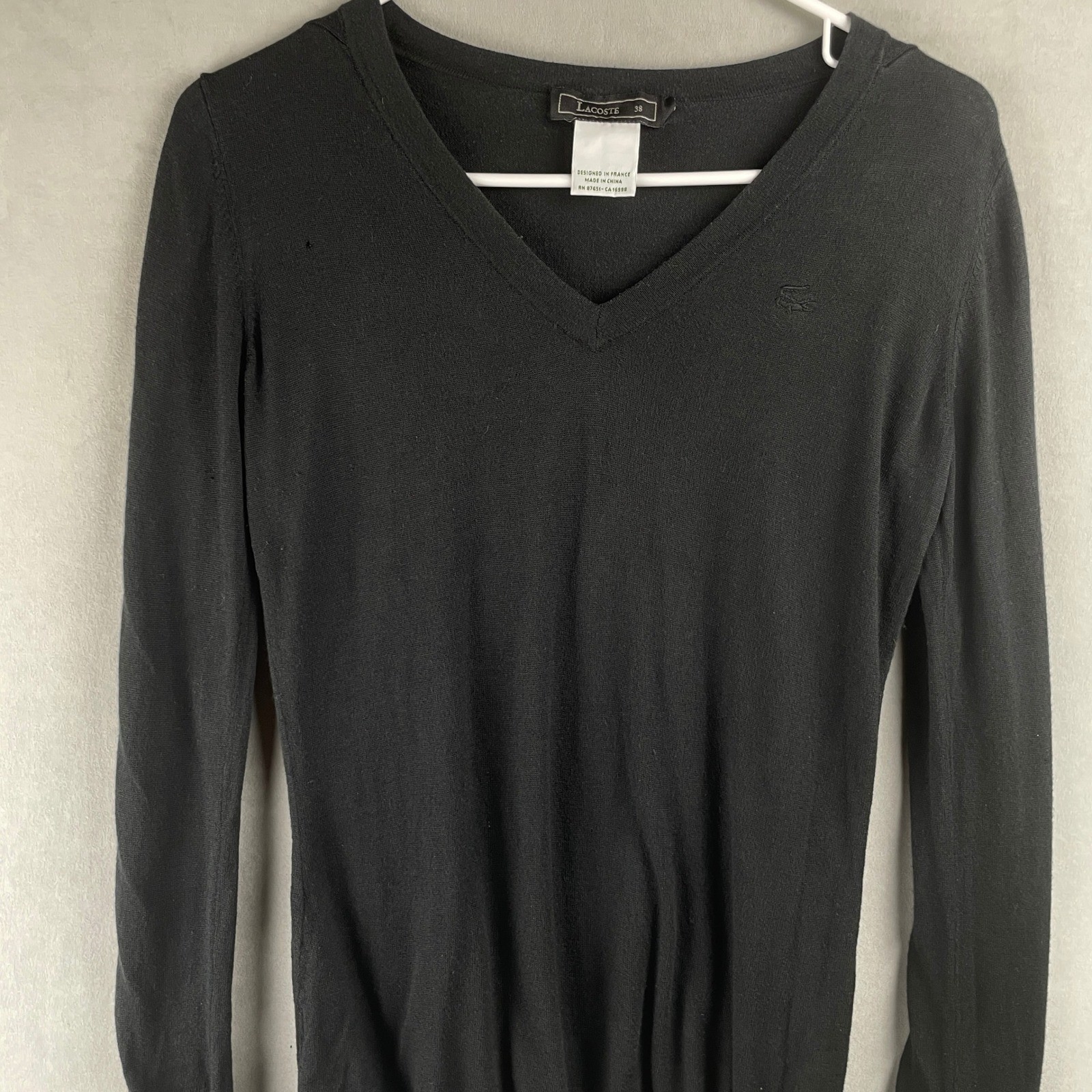 Lacoste Black V Neck Long Sleeve Silk Cashmere Preppy Sweater 38/M Classic Croc