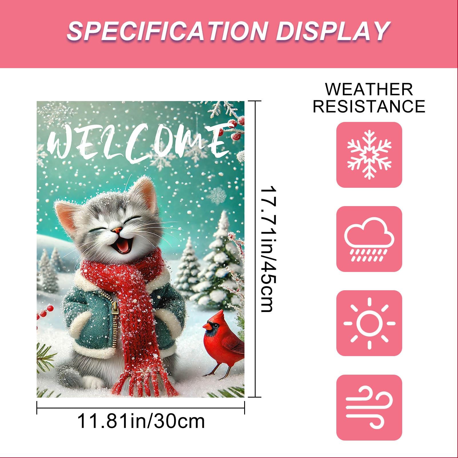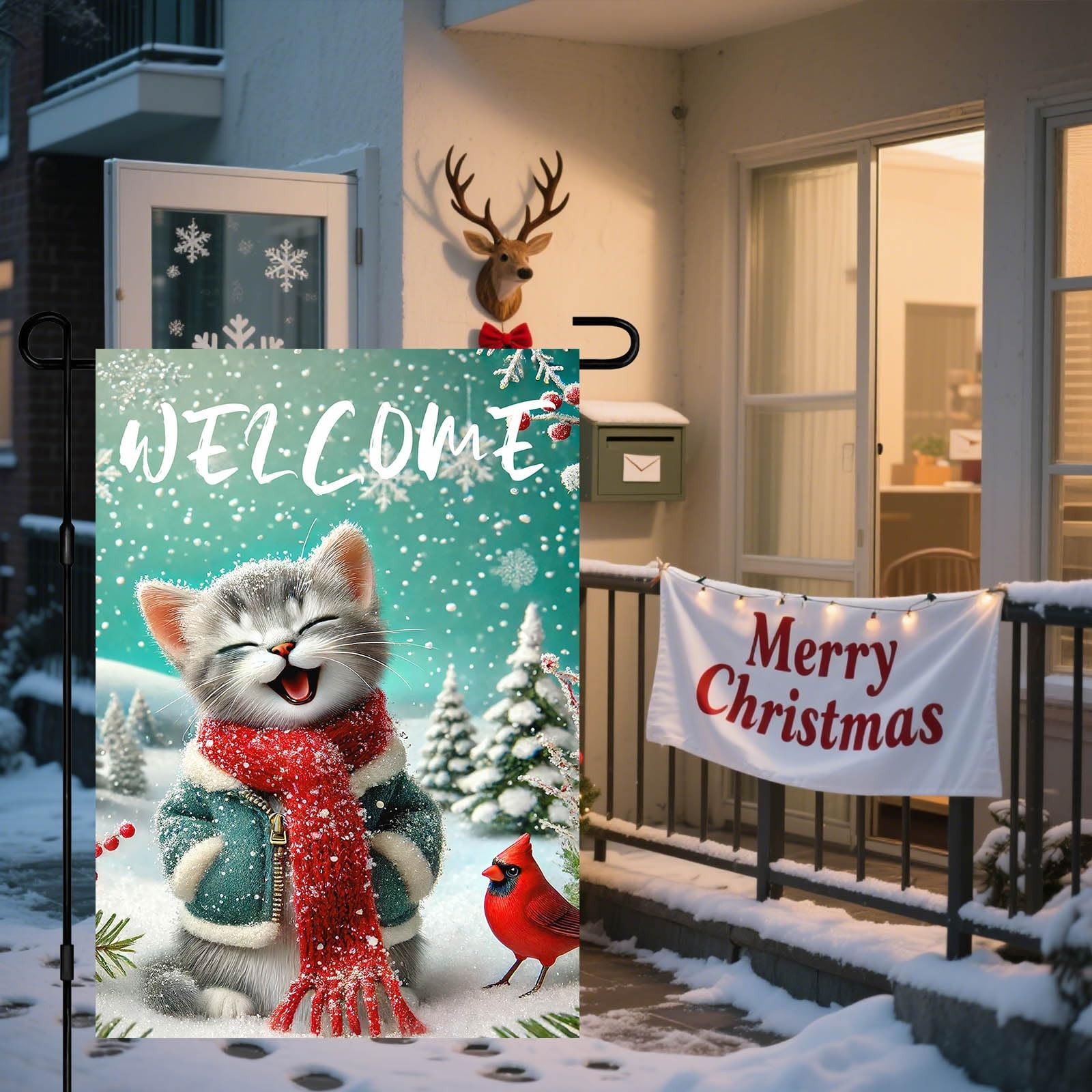 Christmas Cat Garden Flag 12x18 Inch Double Sided Outdoor Yard Banner with Sn...