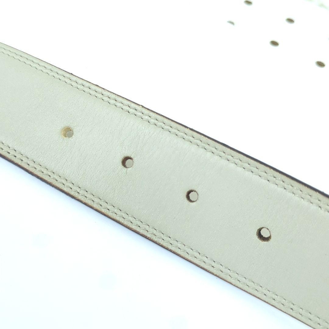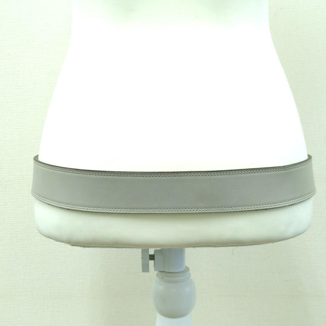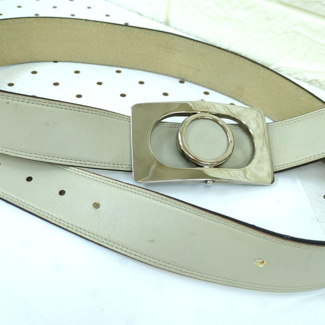 YSL Logo Plate Saint Laurent Leather Belt Beige Gray 95/38 Holes Added Women's