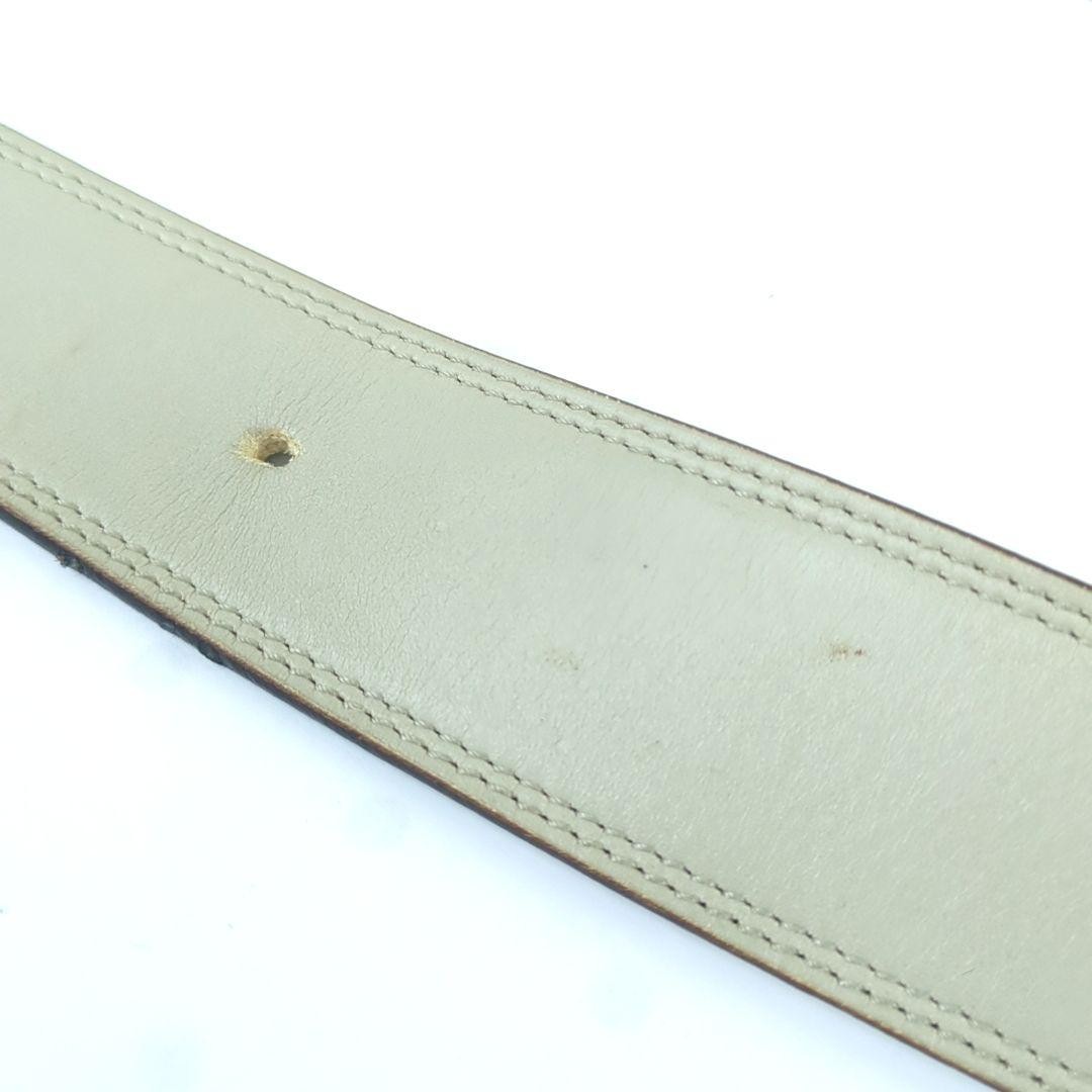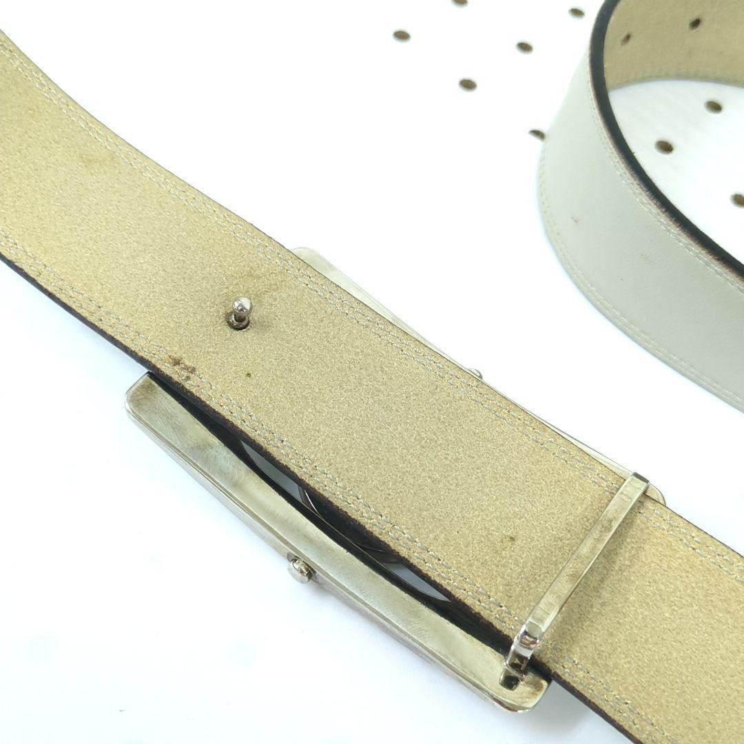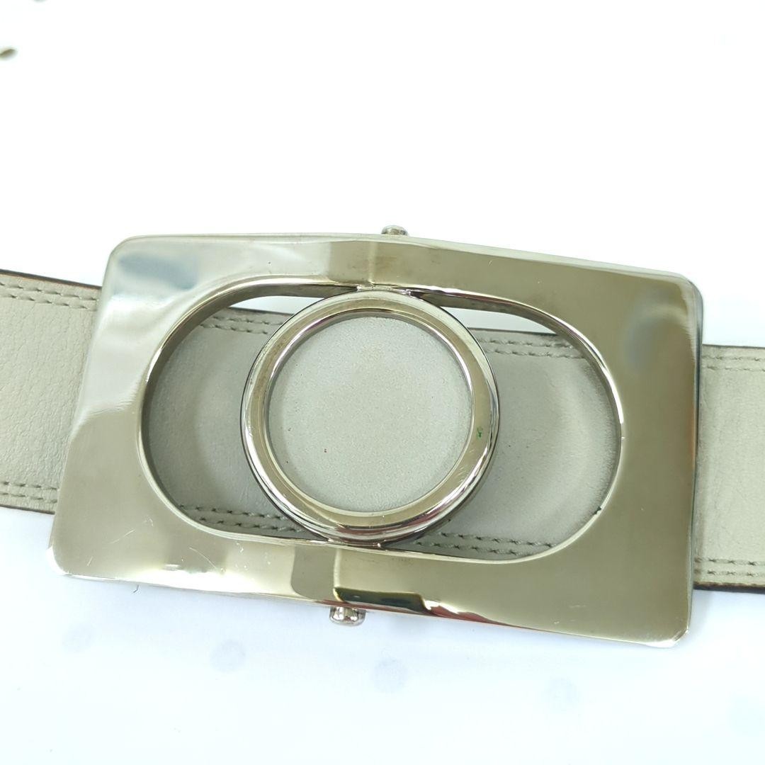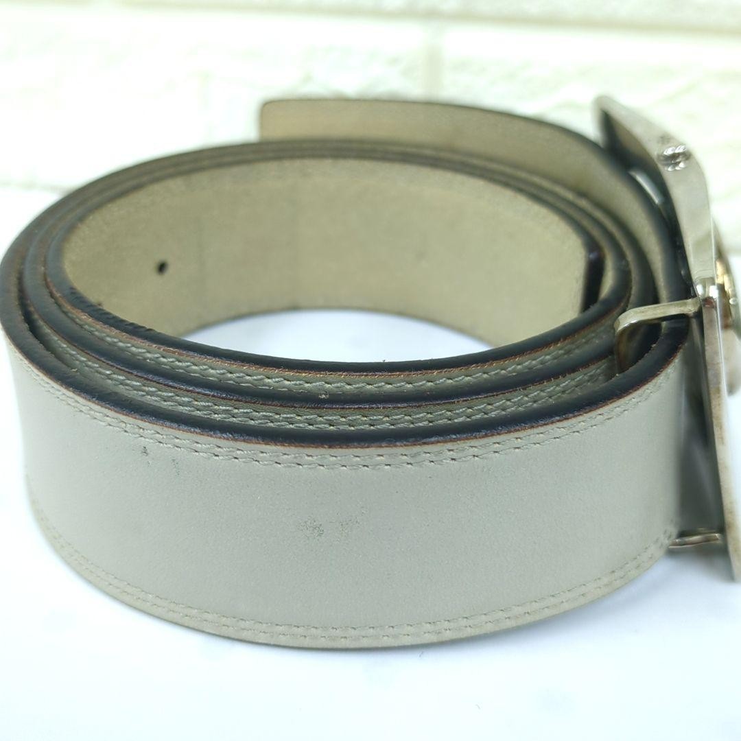 YSL Logo Plate Saint Laurent Leather Belt Beige Gray 95/38 Holes Added Women's