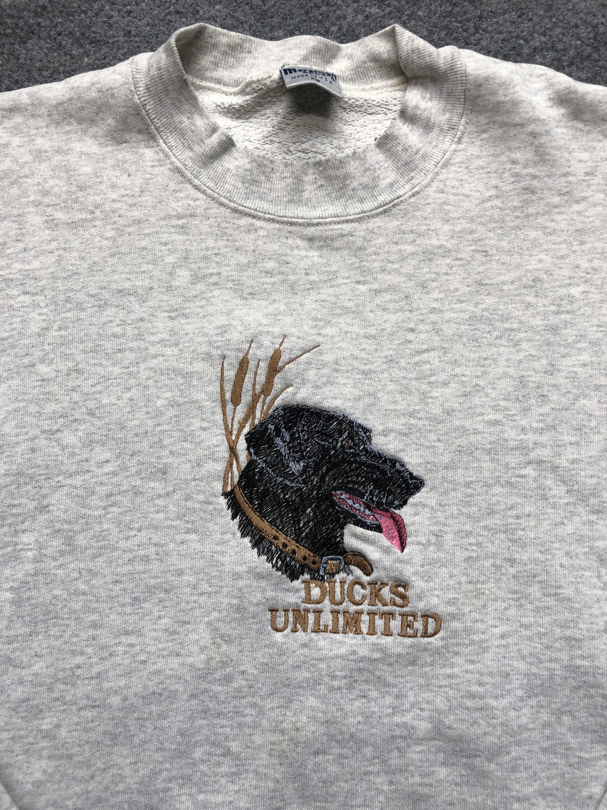 Vintage Ducks Unlimited Sweatshirt Mens XL Gray Dog Hunting Made USA Marathon