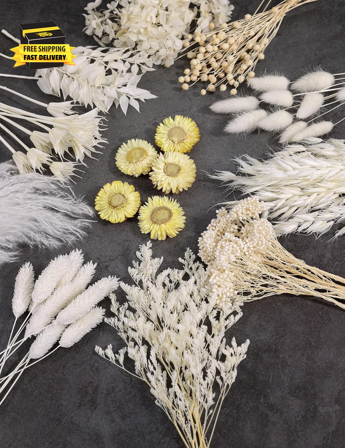 Natural Dried Flower Set, Bulk Dried Flowers with Stems, Dried Daisies, Dried Ra