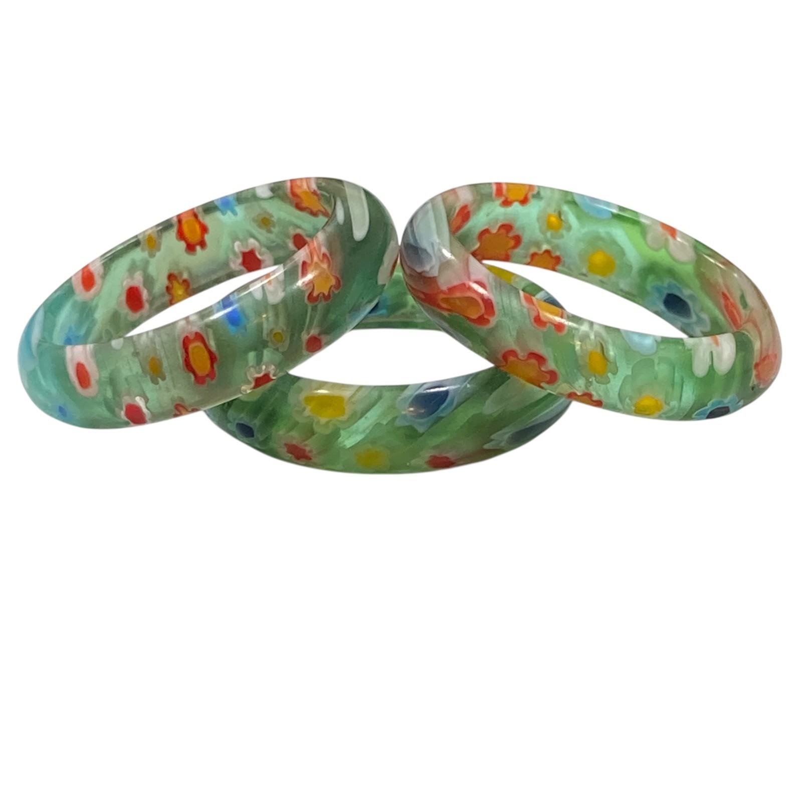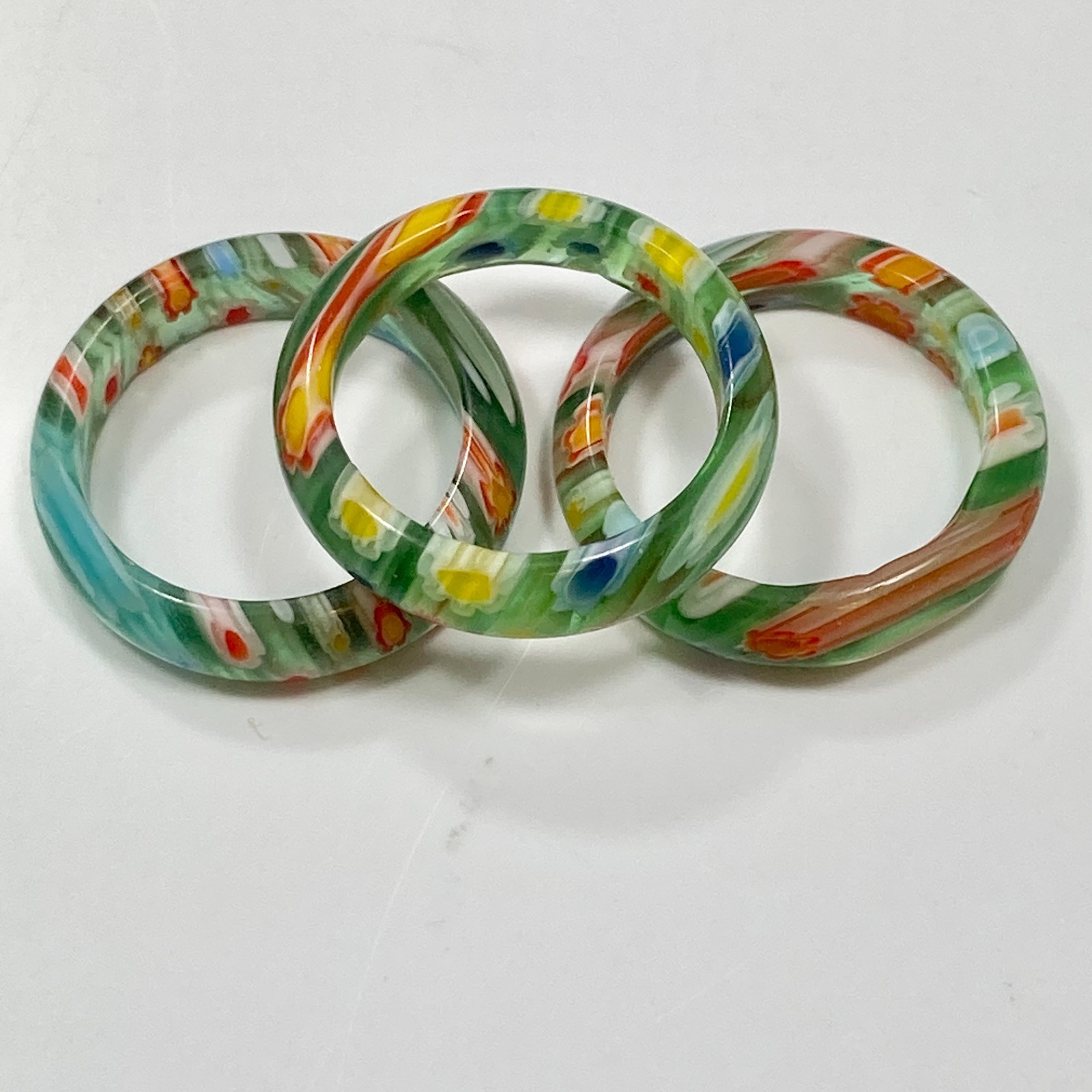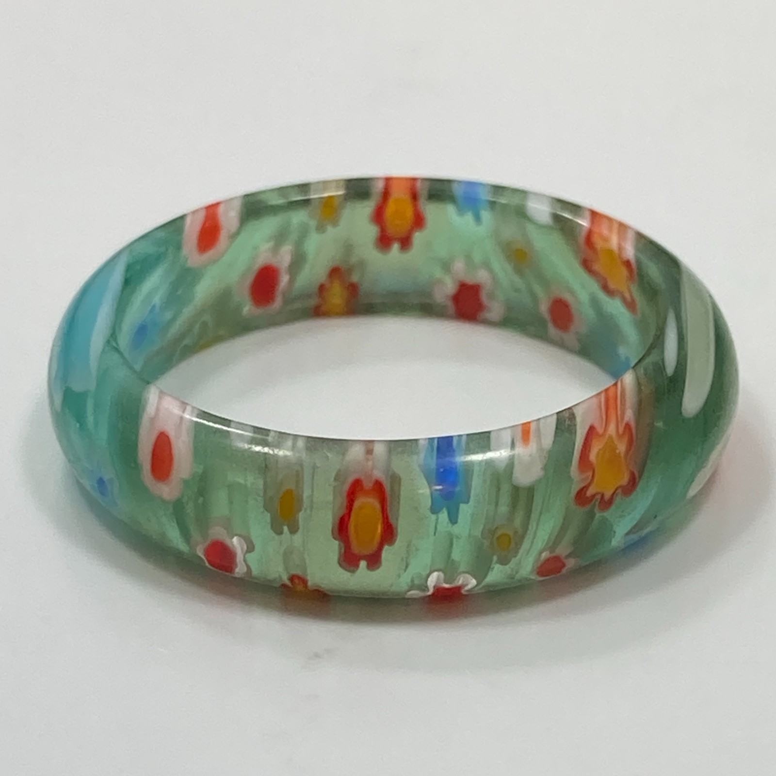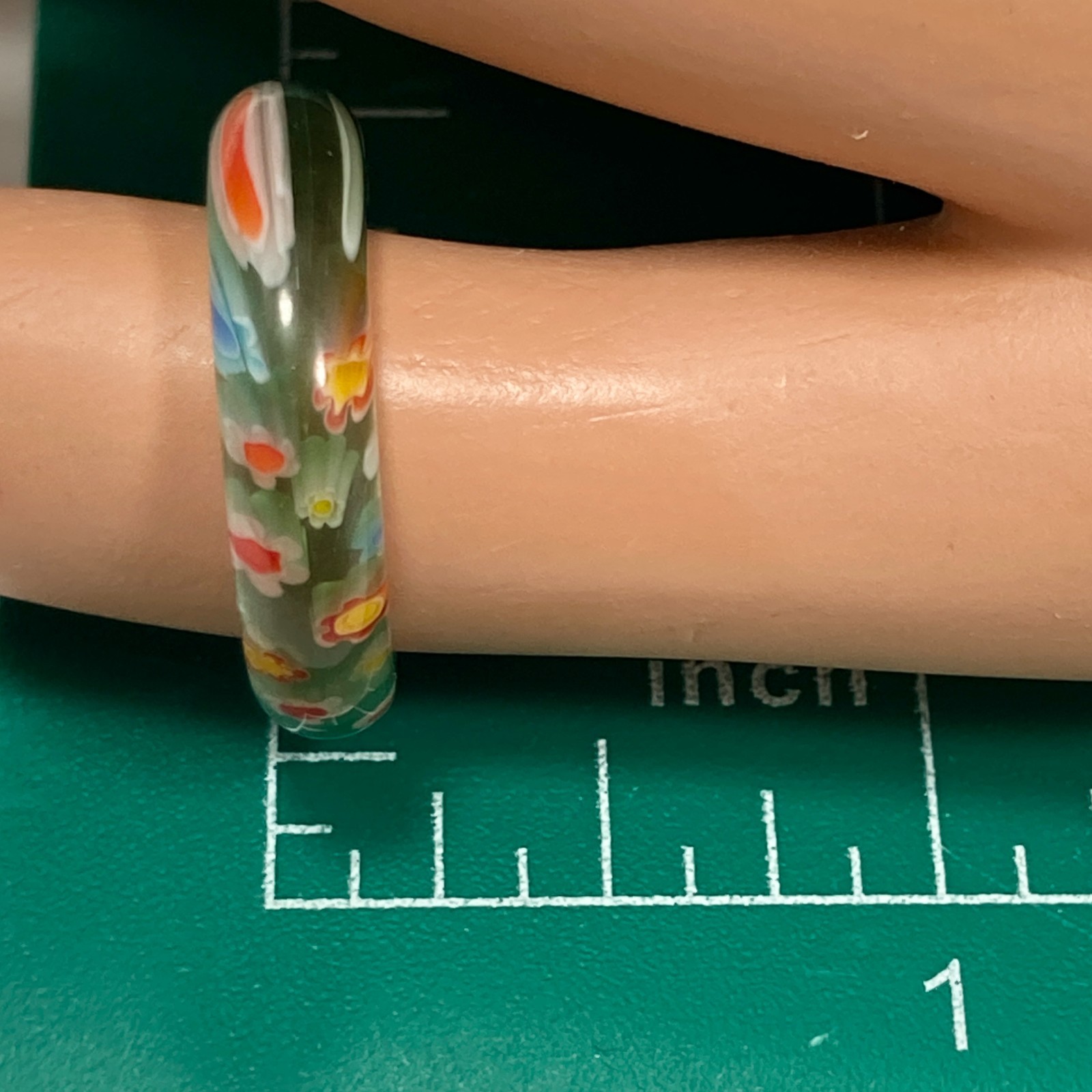 как выглядит Vintage Millefiori Murano Glass Ring Band Size 8 Multicolor Flowers Blue Green фото