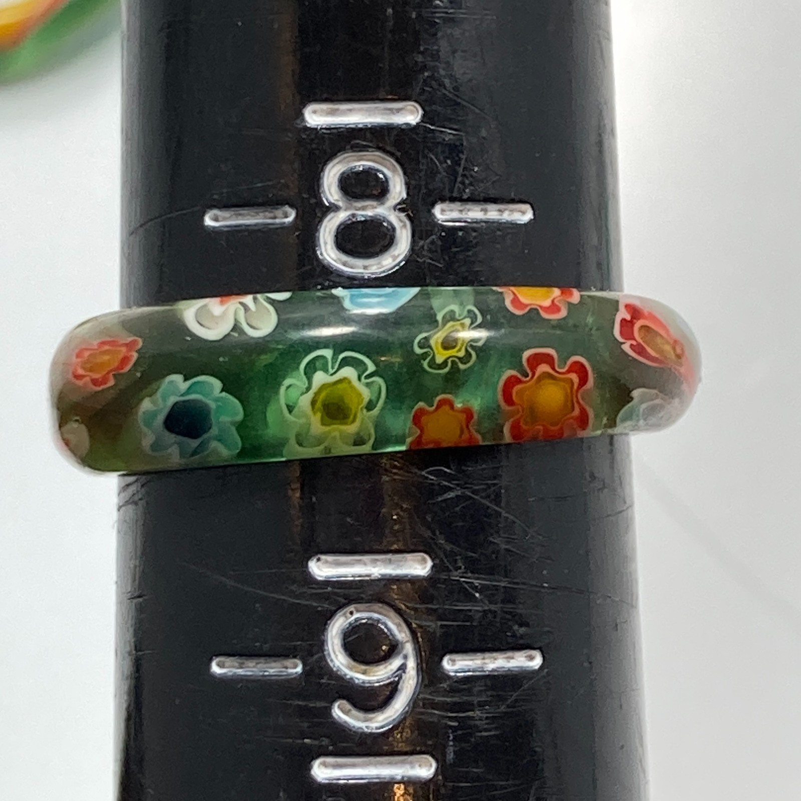 Vintage Millefiori Murano Glass Ring Band Size 8 Multicolor Flowers Blue Green
