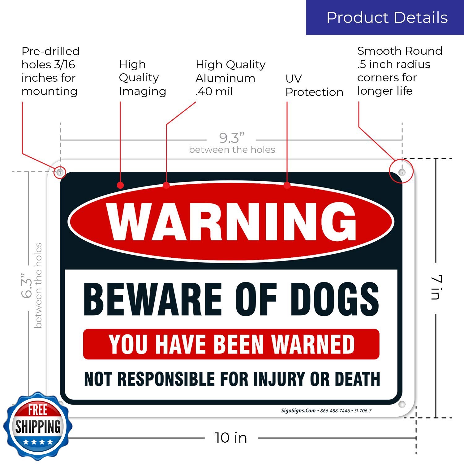 Beware of Dog Sign, You Have Been Warned, Pack of 2 10x7 Inches, Rust Free ...