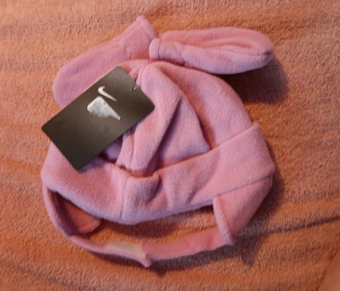 Nike Infant Fleece Chin Strap Trapper Hat Mittens 2 Piece Set Light Pink N09