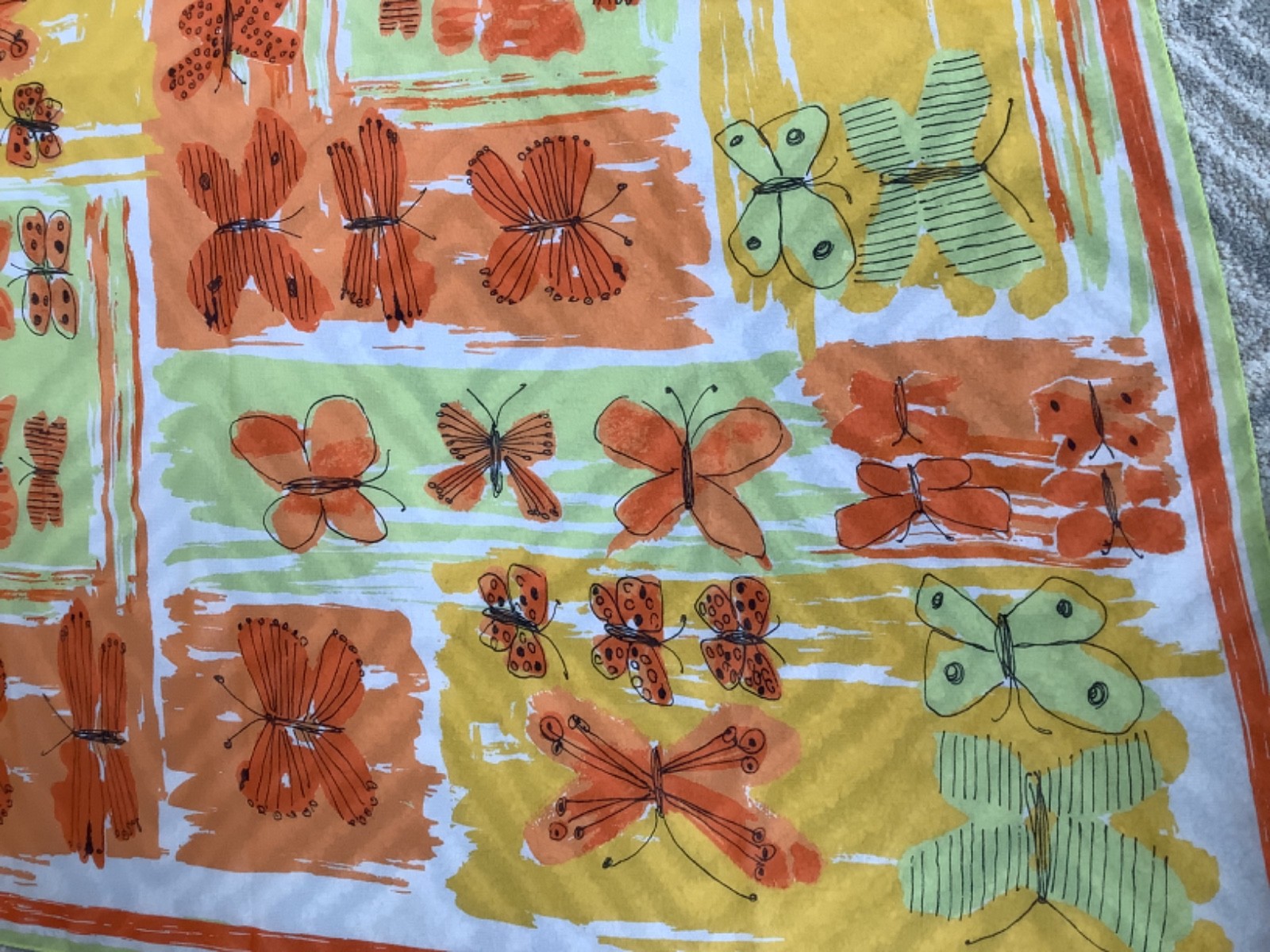 Vintage VERA Neumann chiffon scarf, Butterfly design, 42 square XL, orange